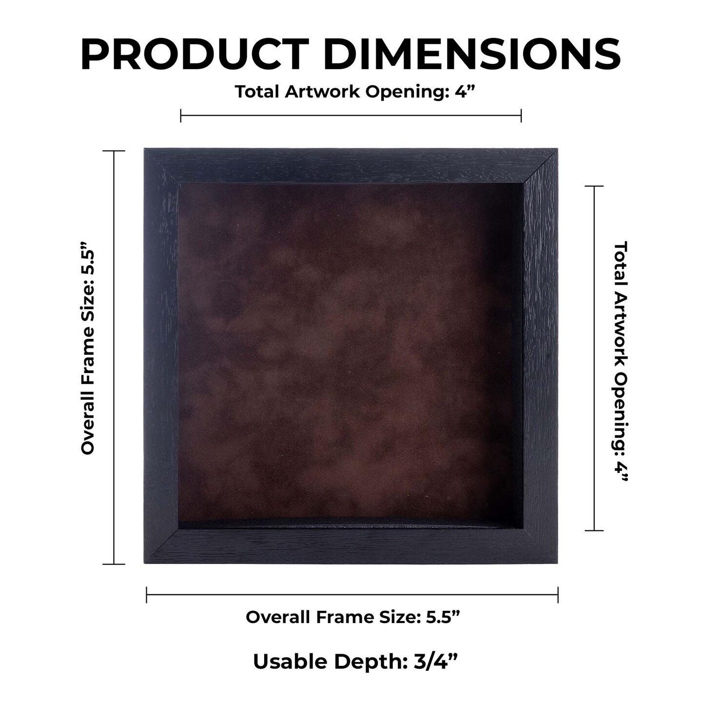 Black Wood Grain Shadow Box Frame with Acrylic Front - Brown Suede Backing, 30 Sizes