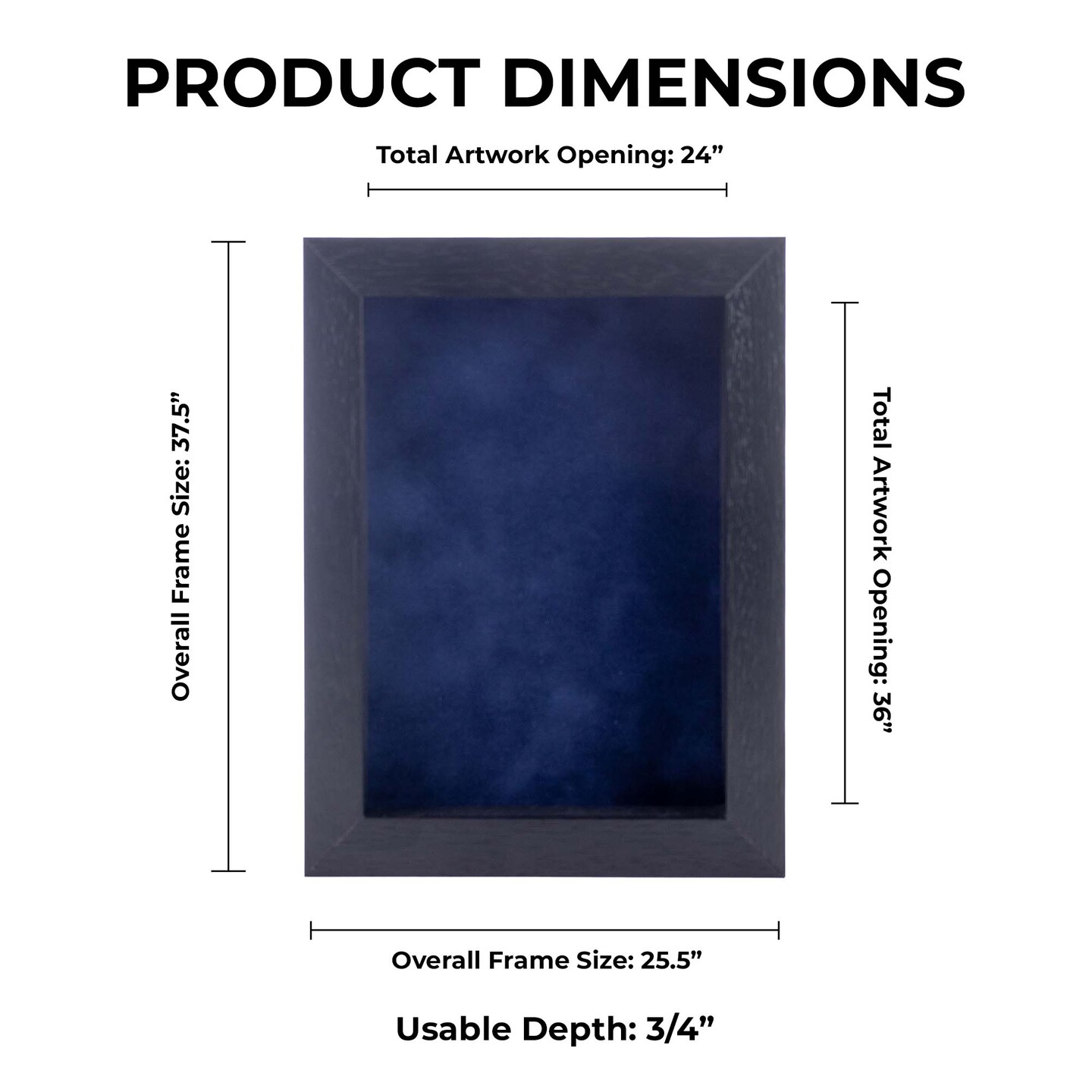 Black Wood Grain Shadow Box Frame with Acrylic Front - Navy Blue Suede Backing, 30 Sizes