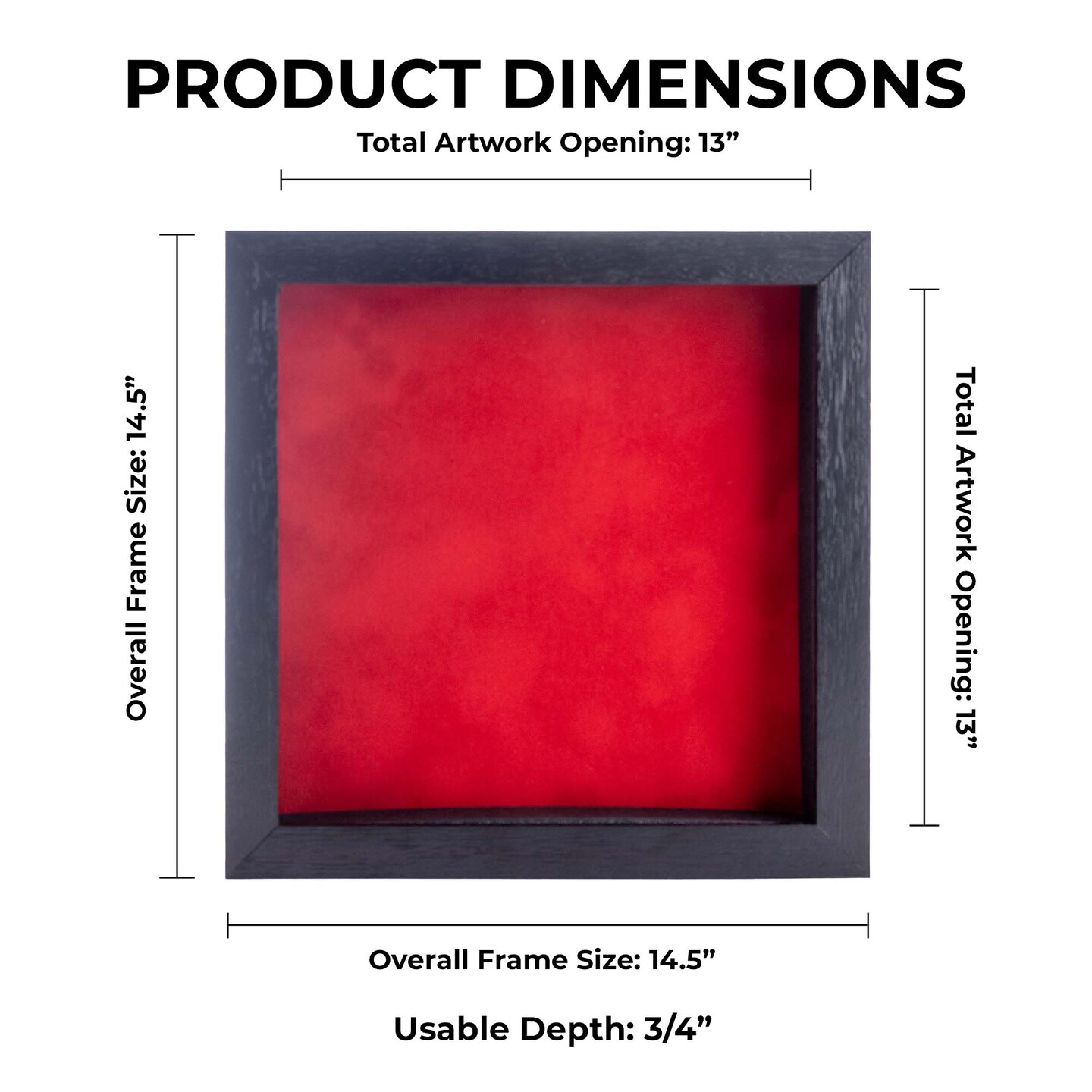Black Wood Grain Shadow Box Frame with Acrylic Front - Red Suede Backing, 30 Sizes