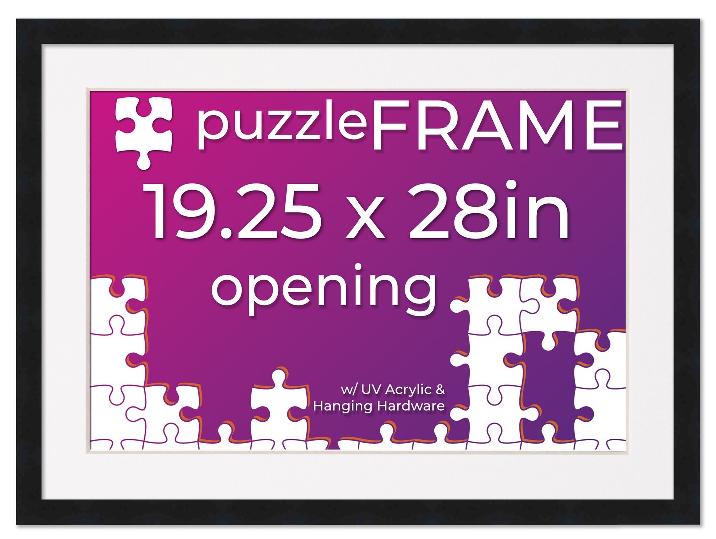 Black Wood Puzzle Frame Kit with Glue Sheets, White Mat, Backing, UV Acrylic - Available in 20 Popular Sizes