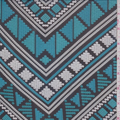 Black/Aqua Sequin Print Chevron Chiffon Fabric By the Yard