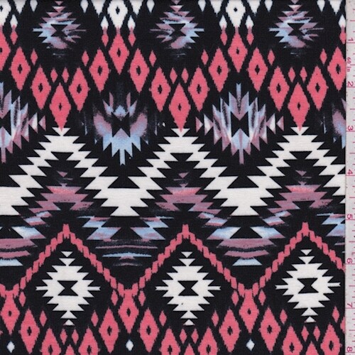 Black/Coral Southwest Print Jersey Knit Fabric By the Yard