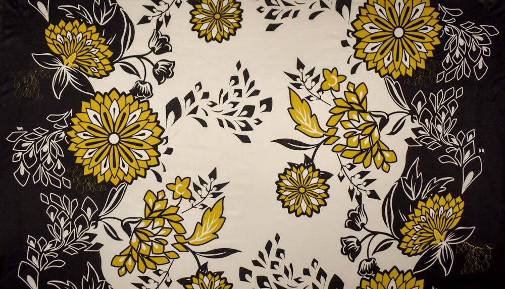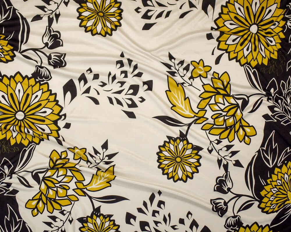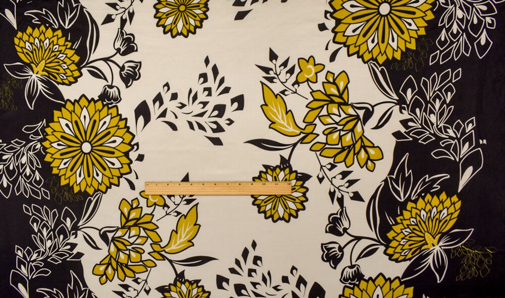 Black-Dijon-White Floral Border Printed Stretch Silk Jersey Knit Fabric By the Yard
