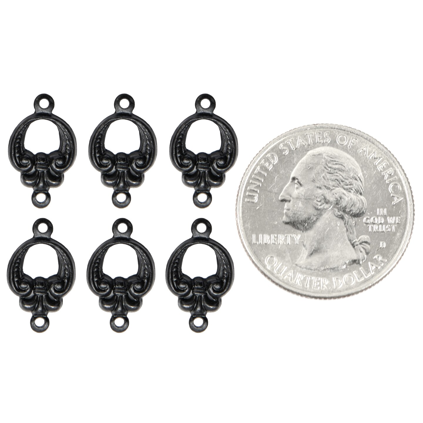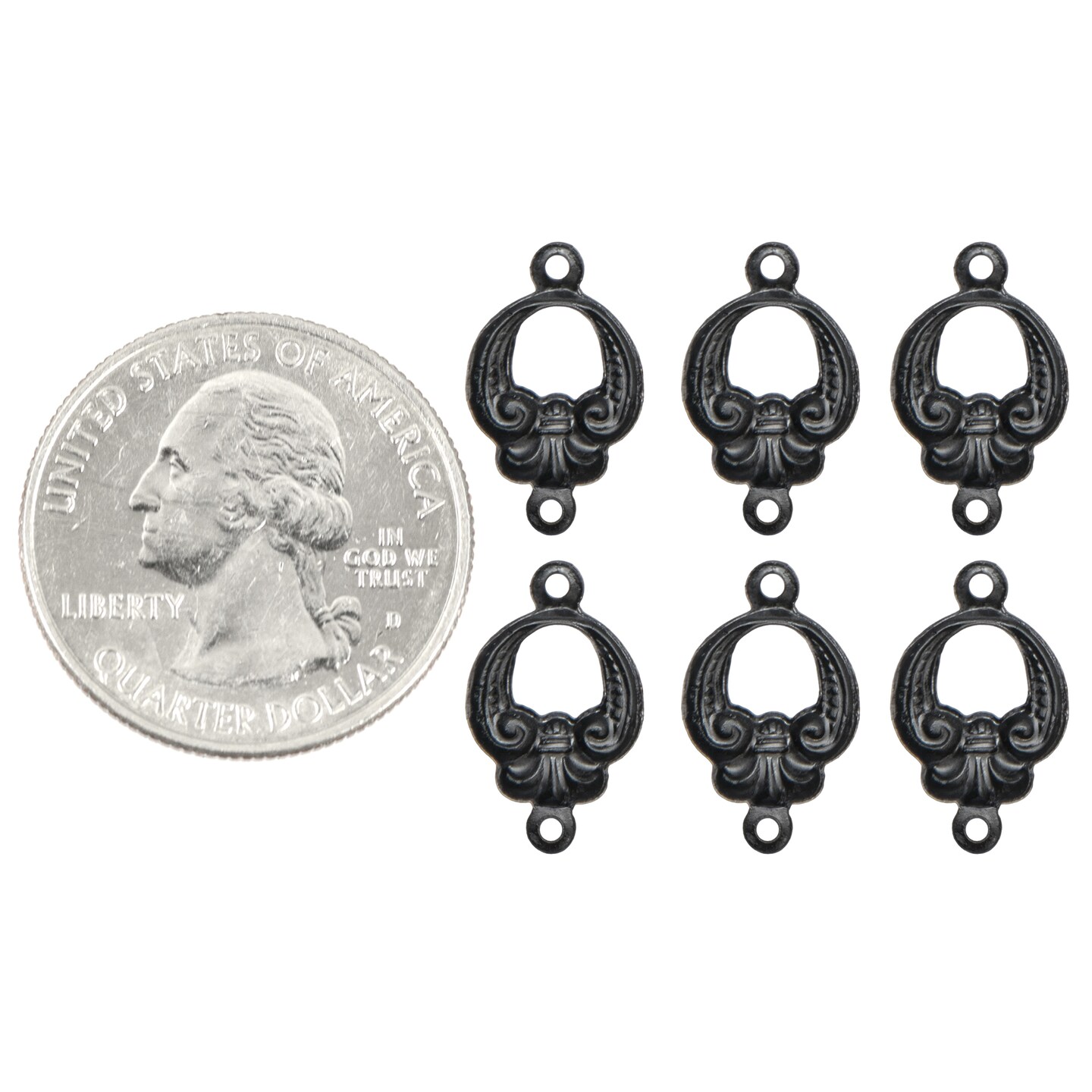 Blackened Brass Art Deco Two Ring Connectors - Set of Six - BB-2C72