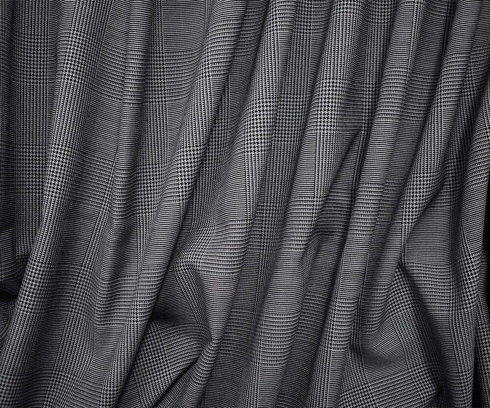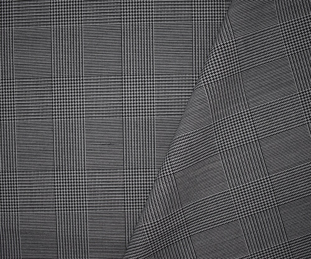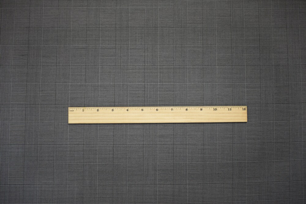 Black-Gray Wool-Poly Japanese Glen Plaid Woven Suiting Fabric By the Yard