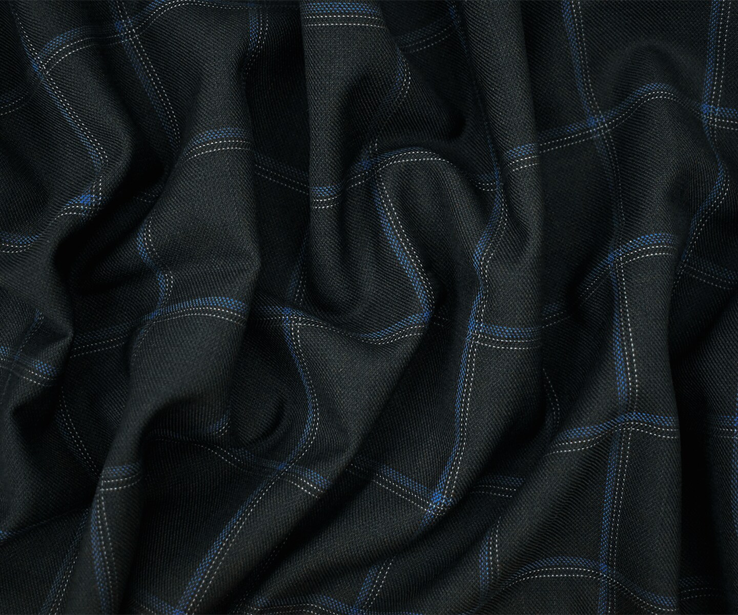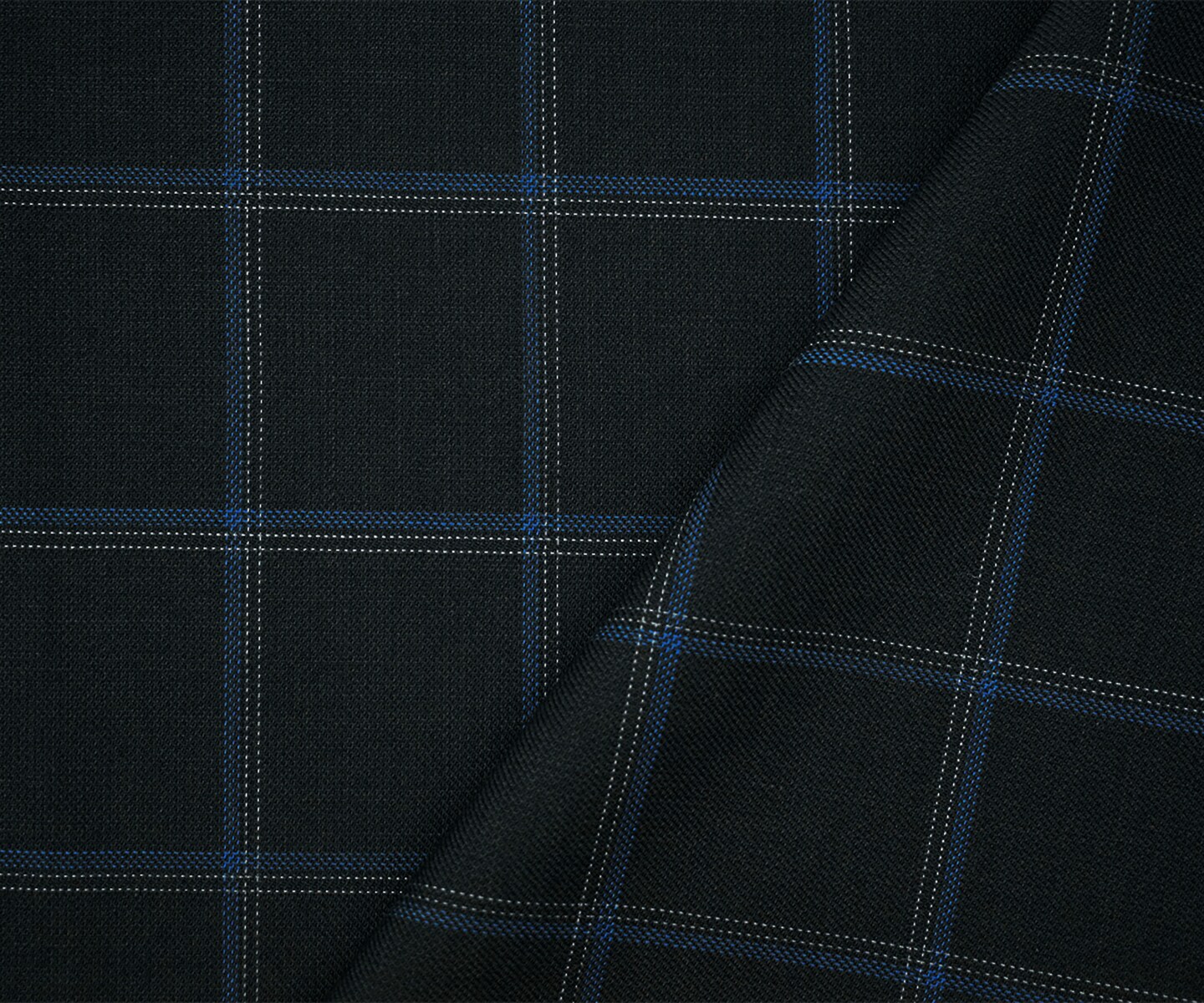 Black-Gray-Blue Poly-Wool Check-Plaid Shirting Twill Woven Fabric By the Yard