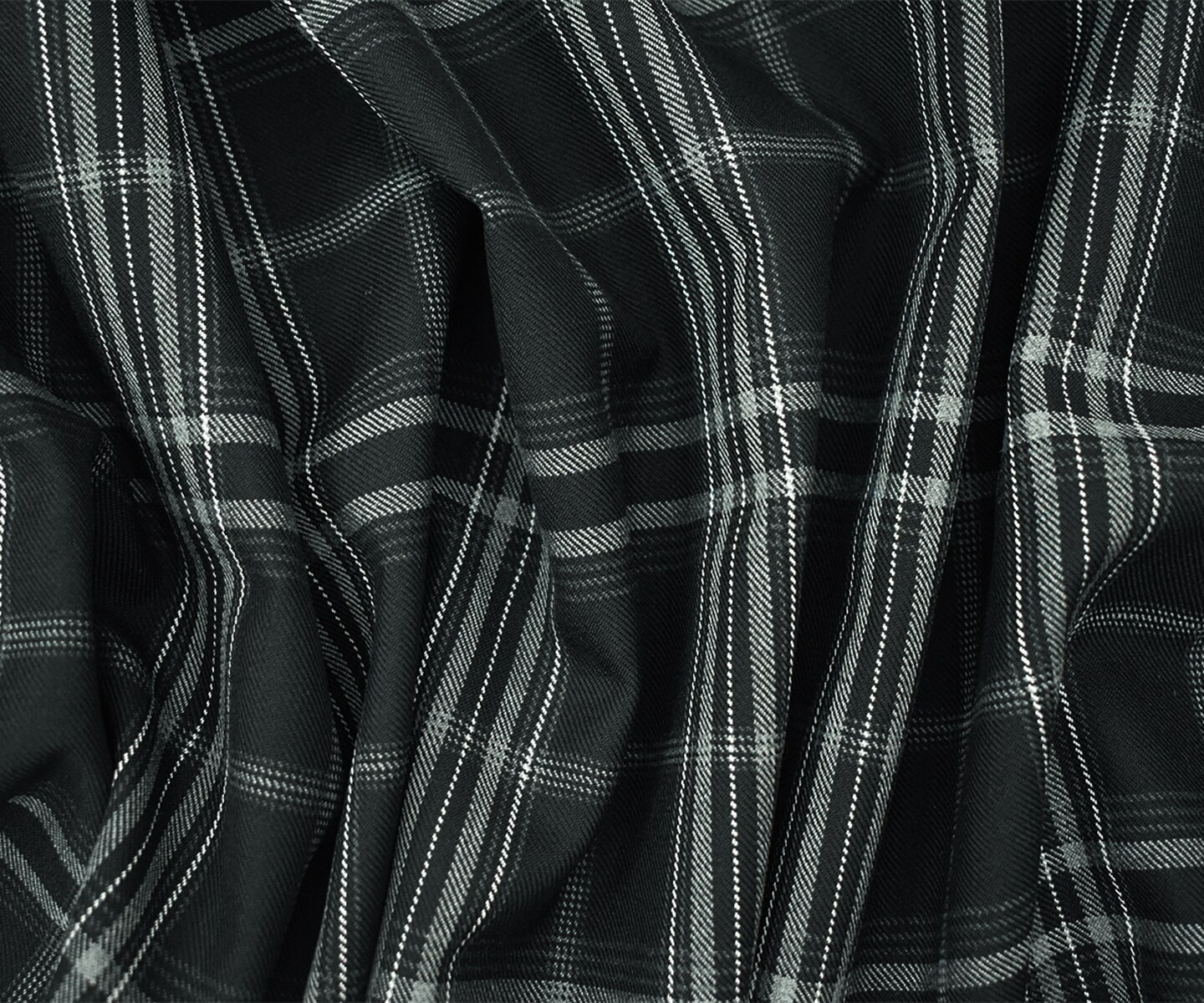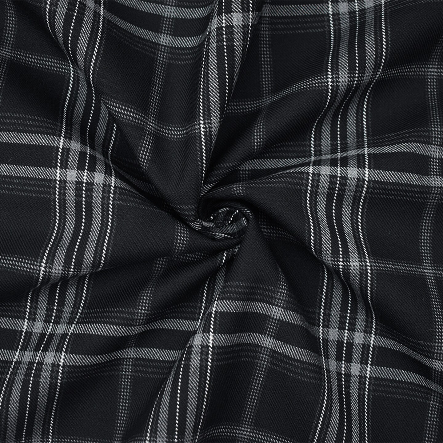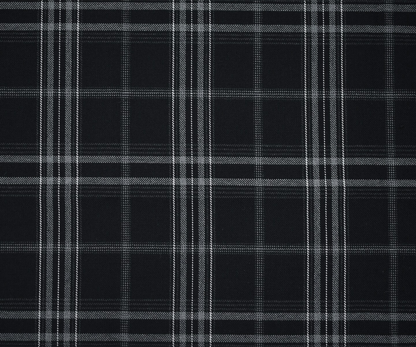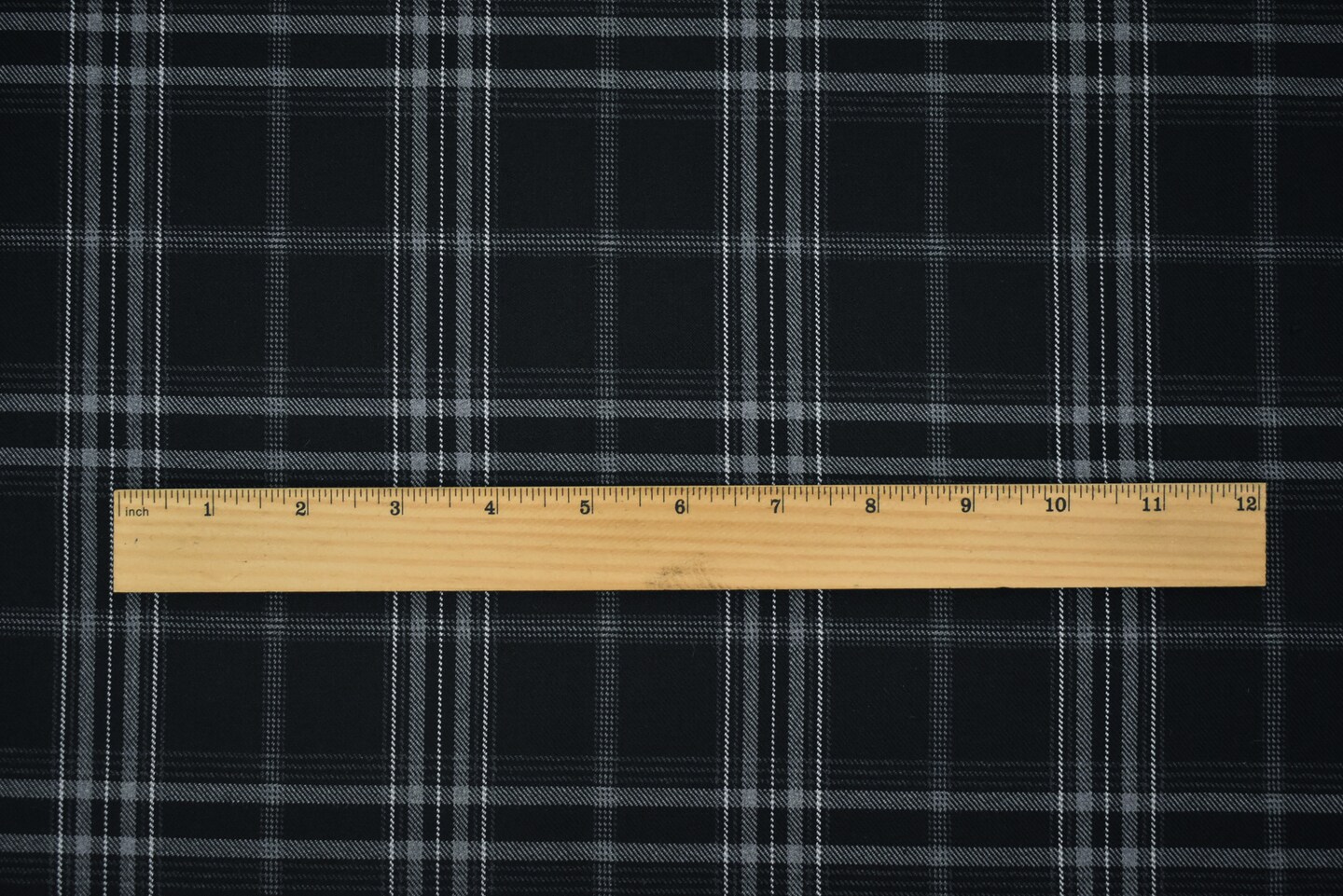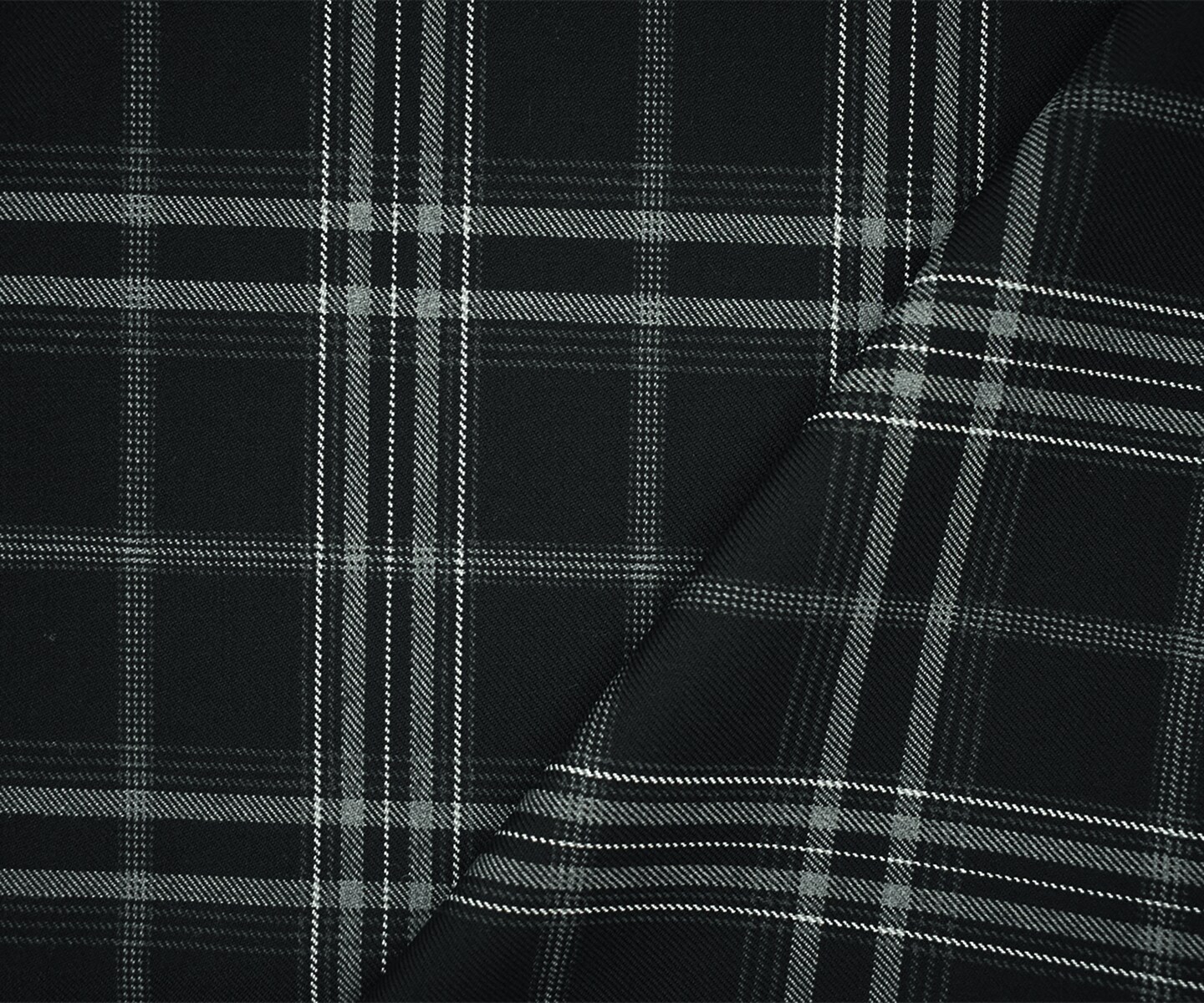 Black-Gray-White Wool-Poly Plaid Twill Woven Suiting Fabric By the Yard