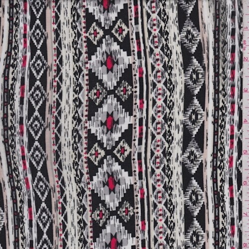 Black/Grey Southwest Stripe Rayon Challis Fabric By the Yard