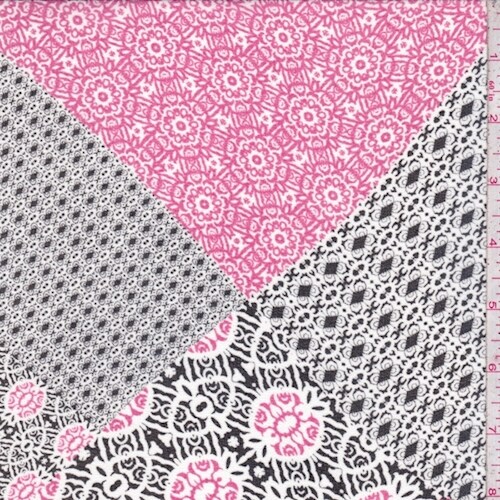 Black/Hot Pink Moroccan Patch Georgette Fabric By the Yard