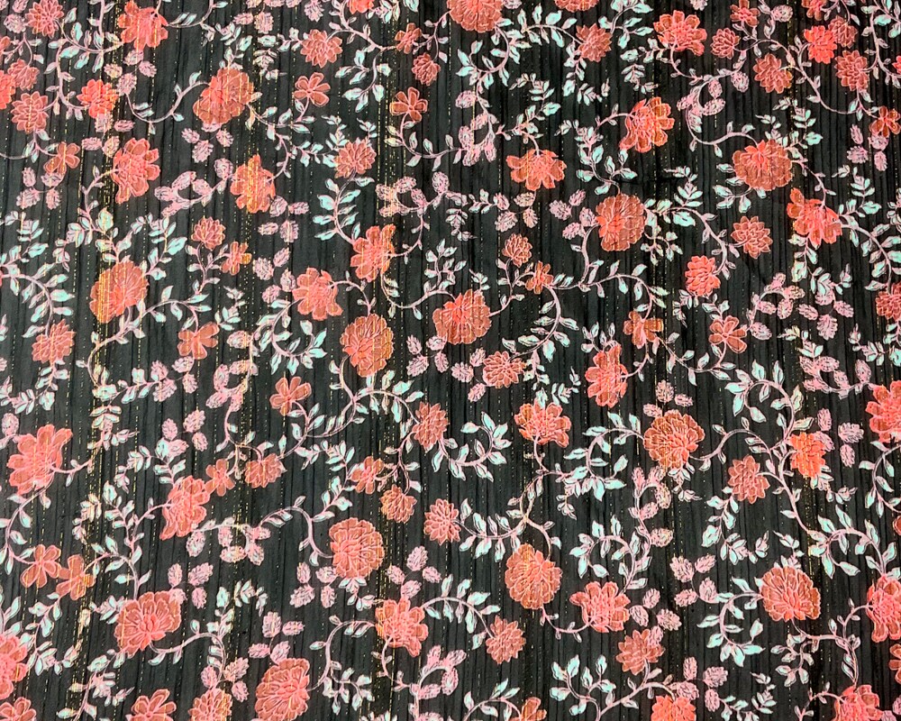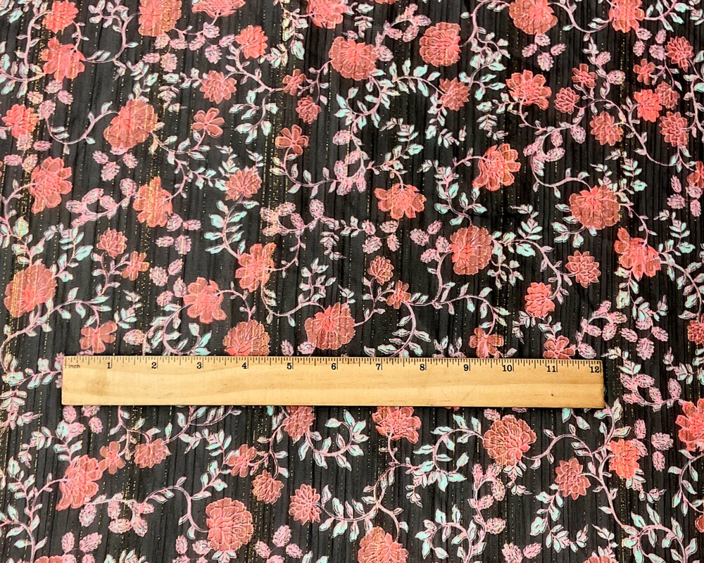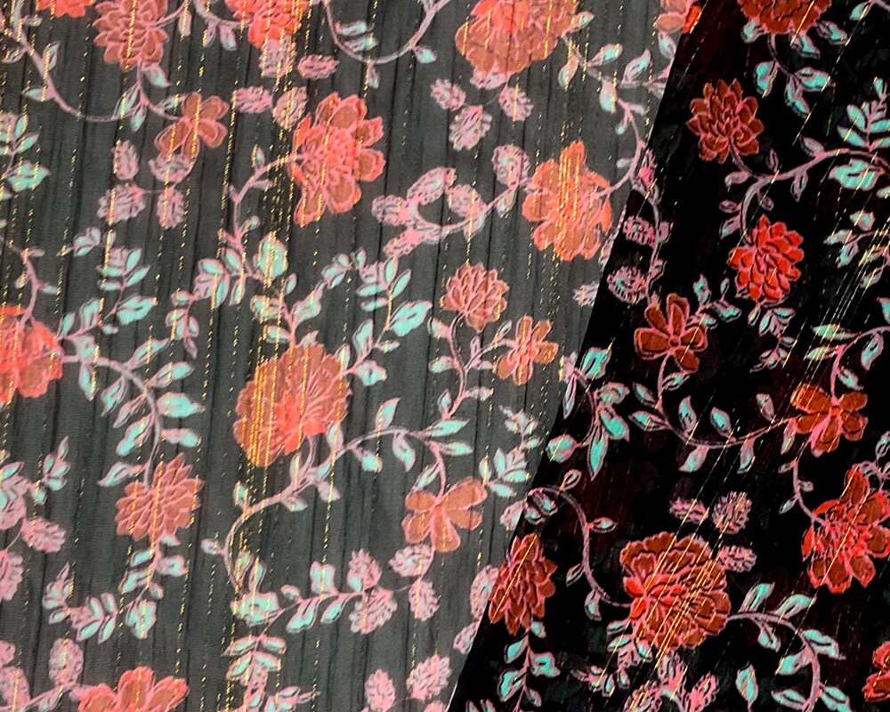 Black-Multi Poly Floral Metallic Print Yoryu Chiffon Woven Fabric By the Yard