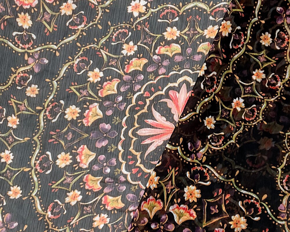 Black-Multi Poly Floral Printed Yoryu Chiffon Woven Fabric By the Yard