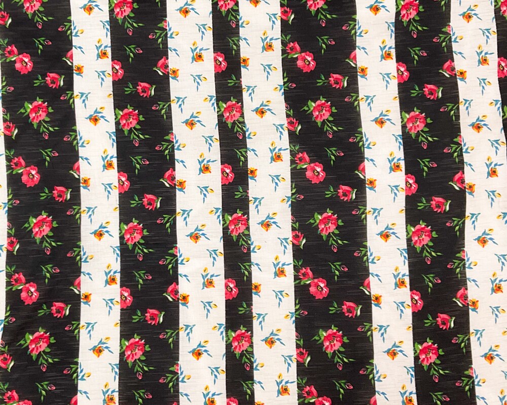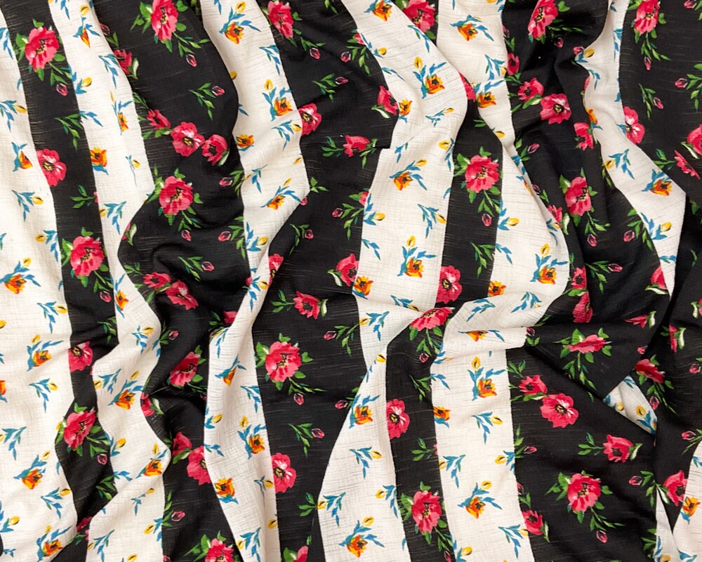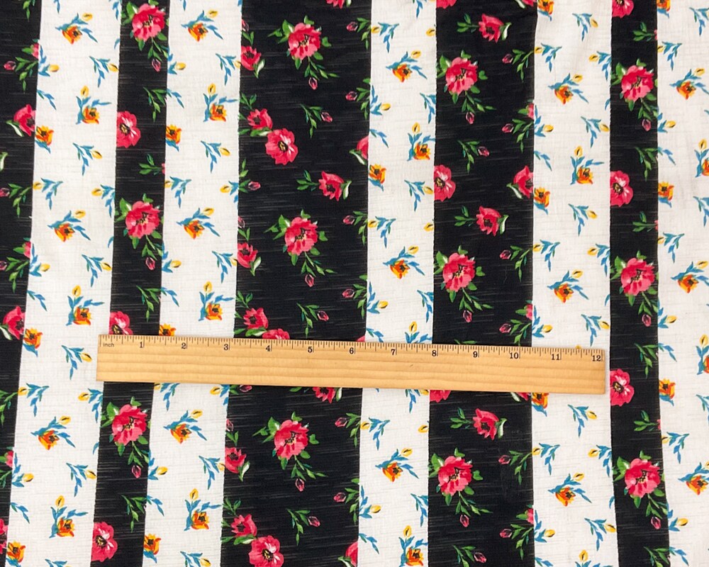 Black-Multi Poly Stretch Floral Print Slub Knit Fabric By the Yard