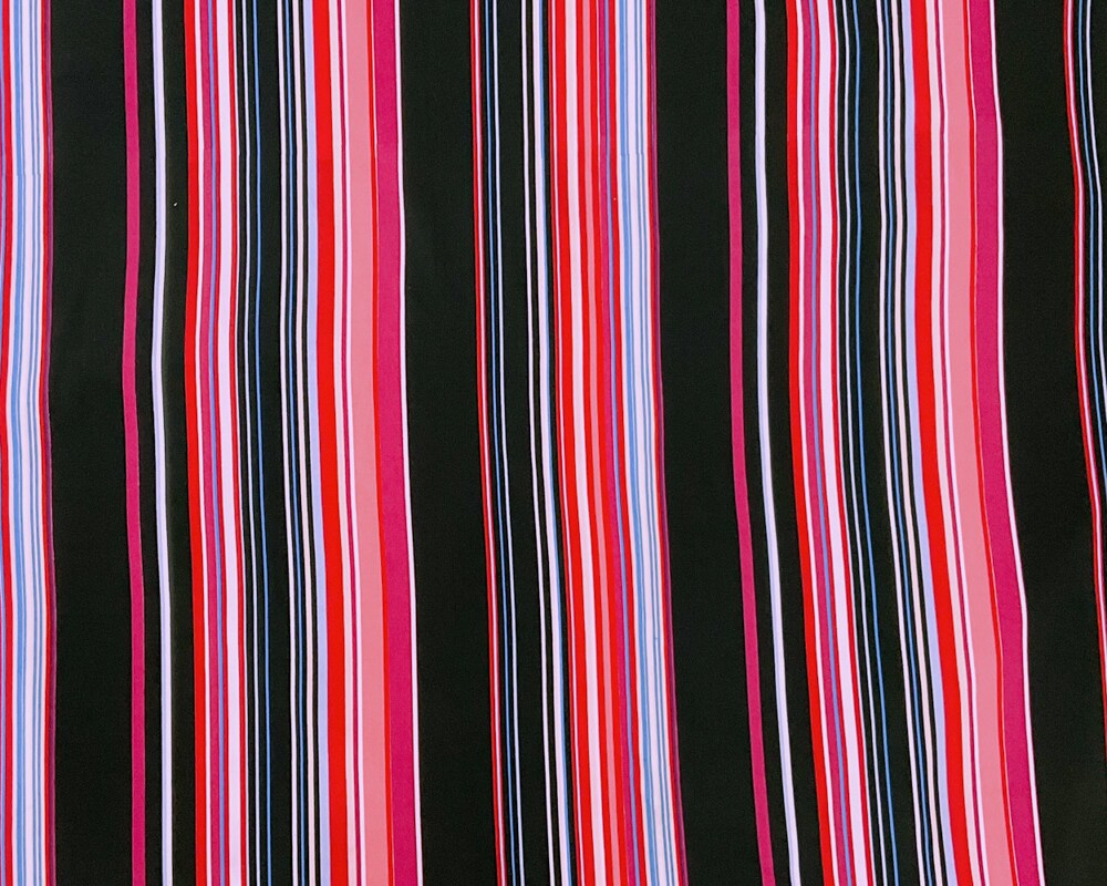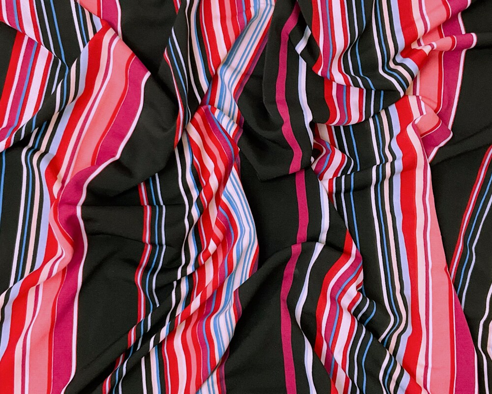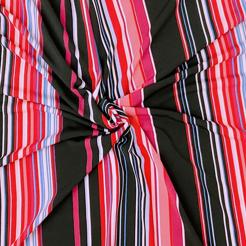 Black-Multi Poly Stretch Stripe Printed ITY Jersey Knit Fabric By the Yard