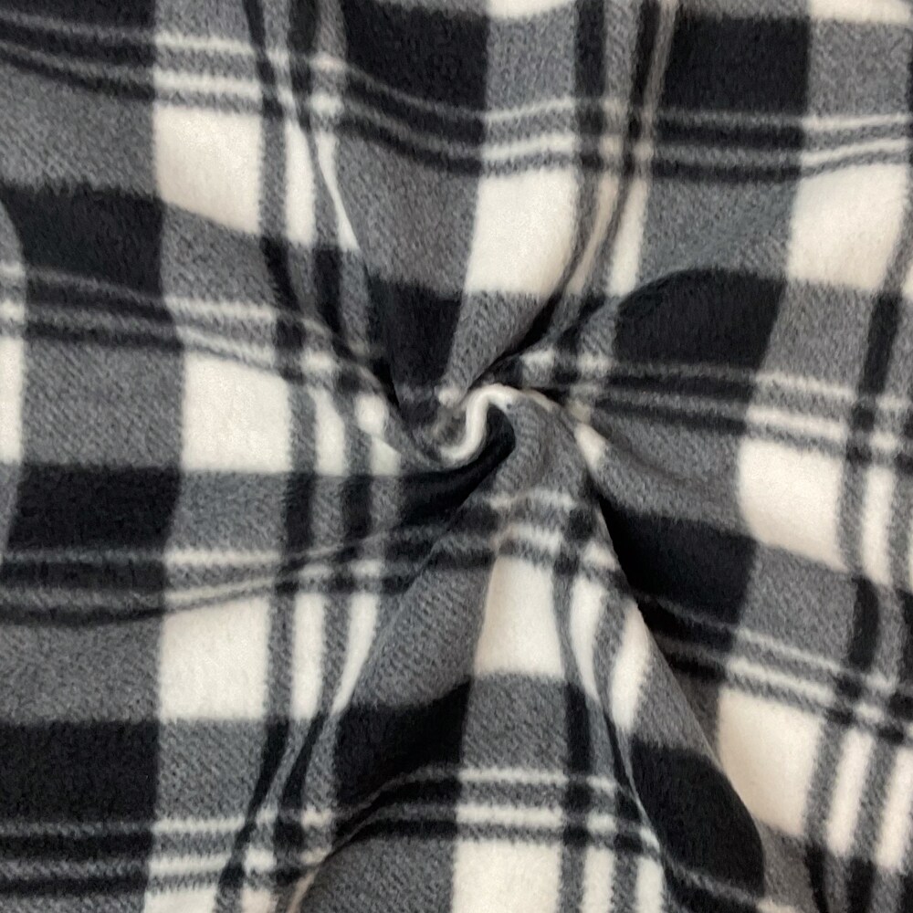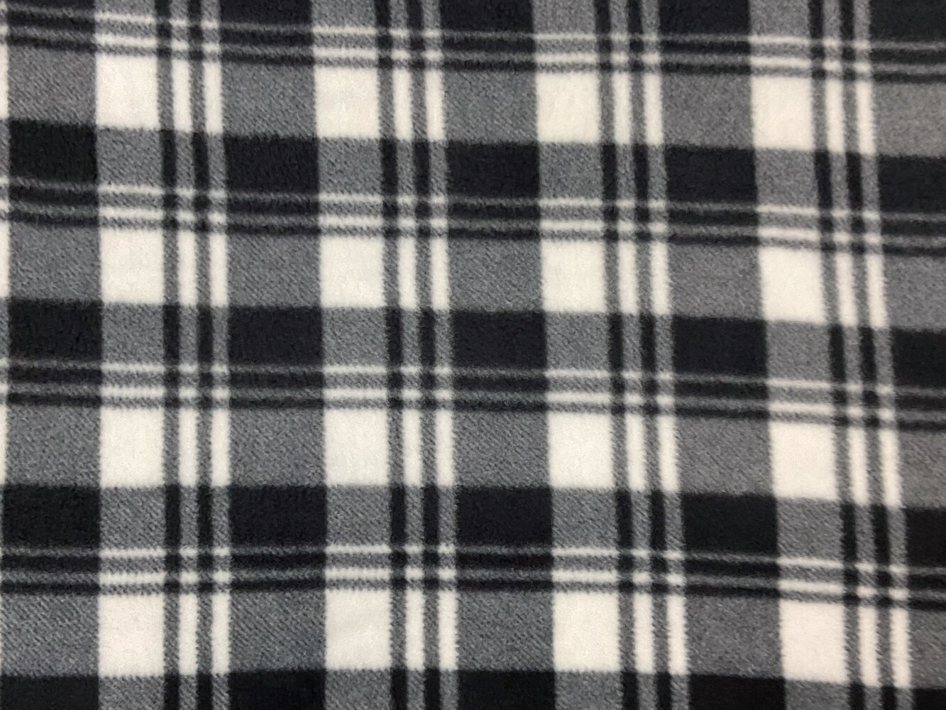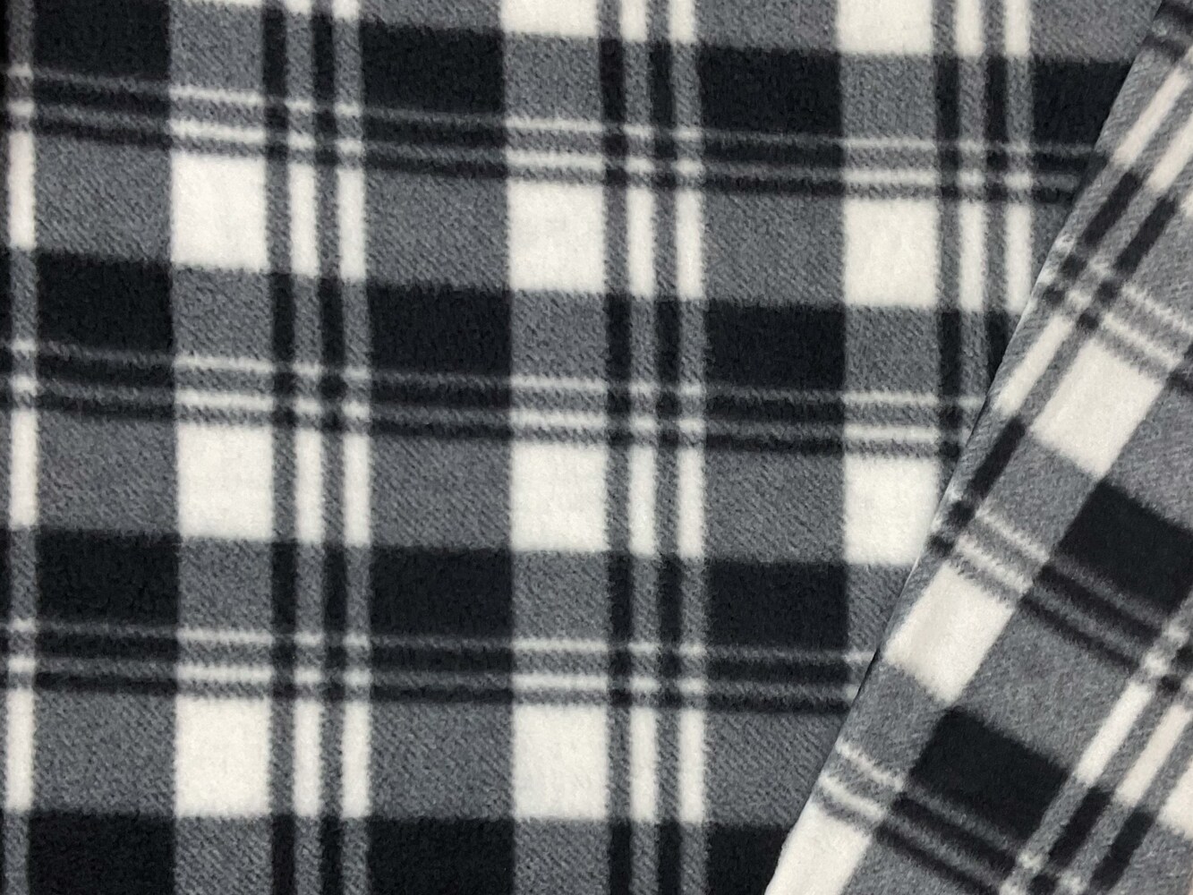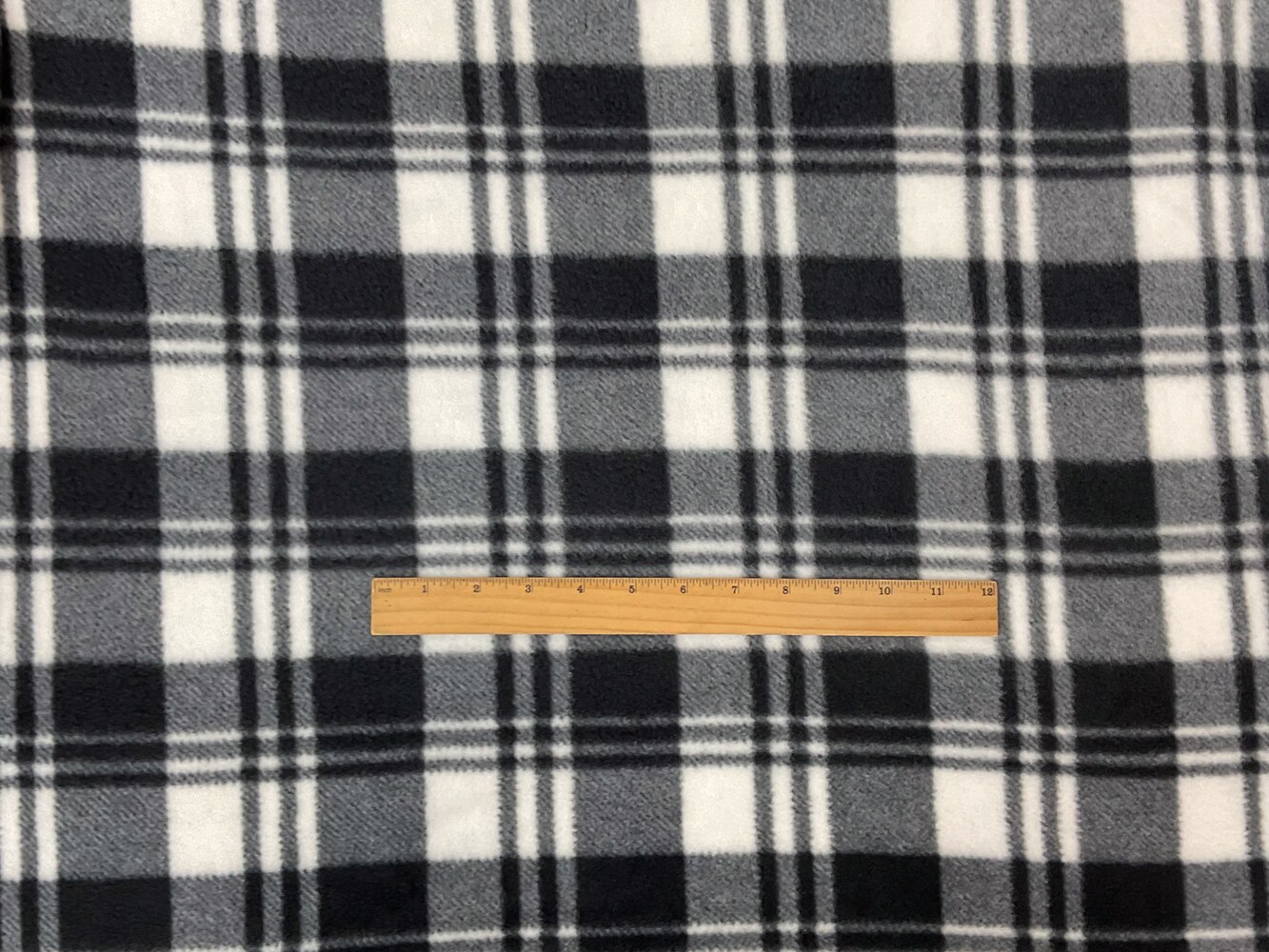 Black-Multi Polyester Plaid Printed Polar Fleece Knit Fabric By the Yard