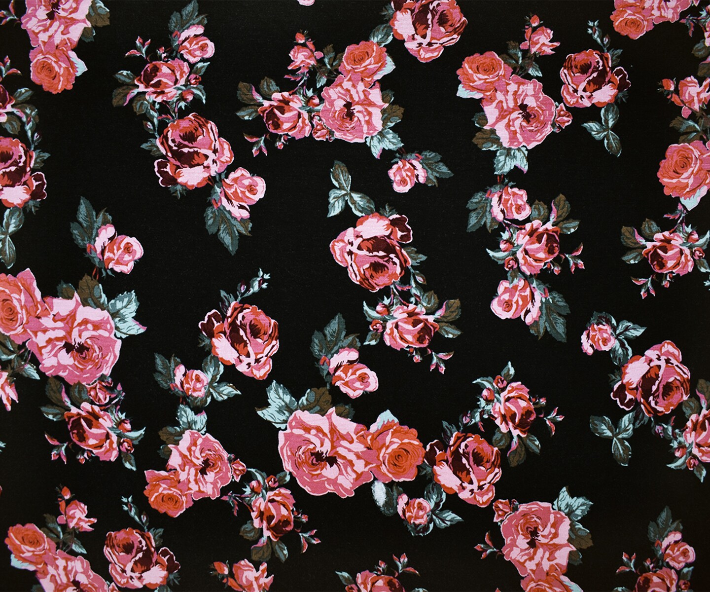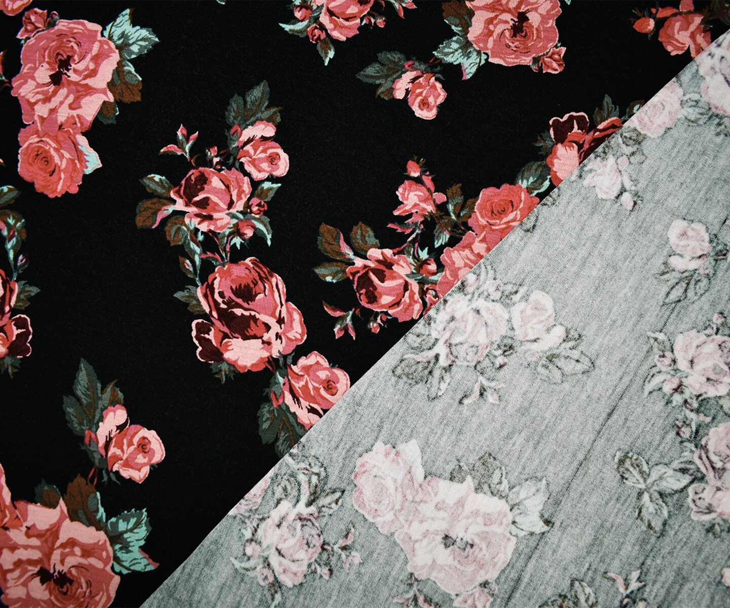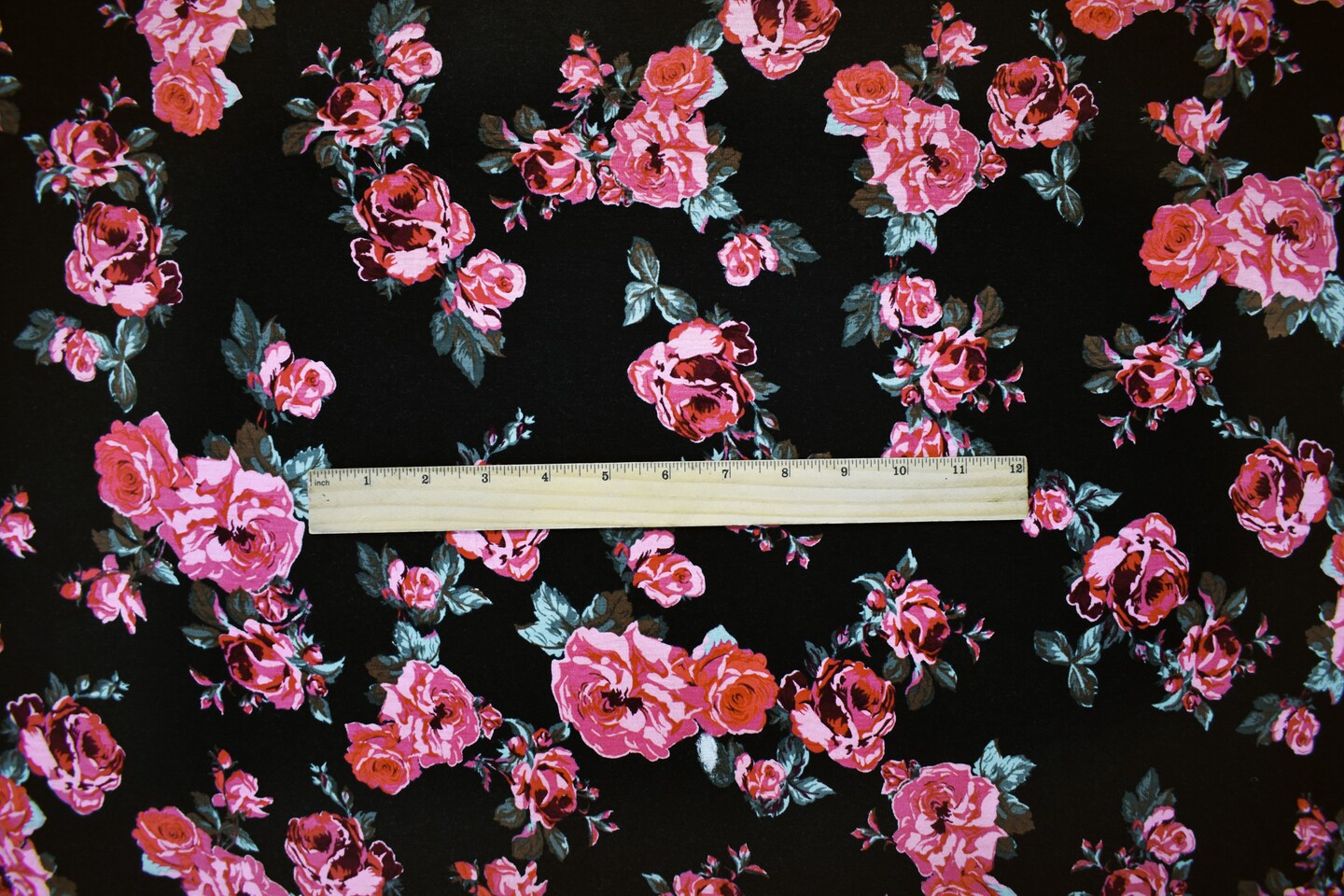 Black-Multi Rayon Stretch Spandex Floral Printed Jersey Knit Fabric By the Yard