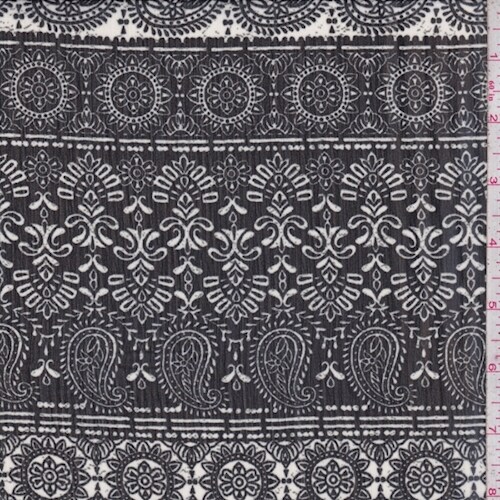 Black/Off White Deco Stripe Crinkle Chiffon Fabric By the Yard