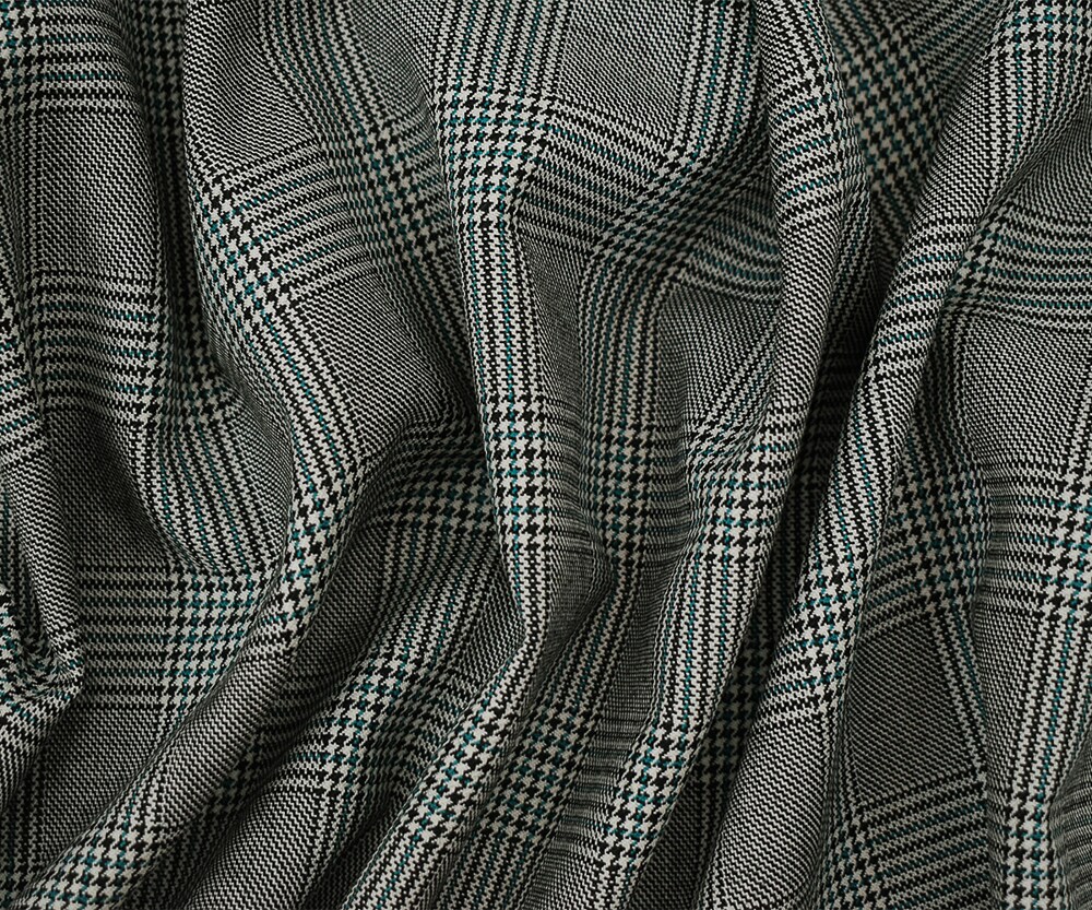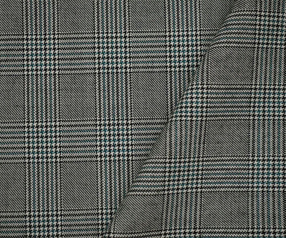 Black-Off-White-Green Poly-Wool Glen Plaid Check Suiting Woven Fabric By the Yard