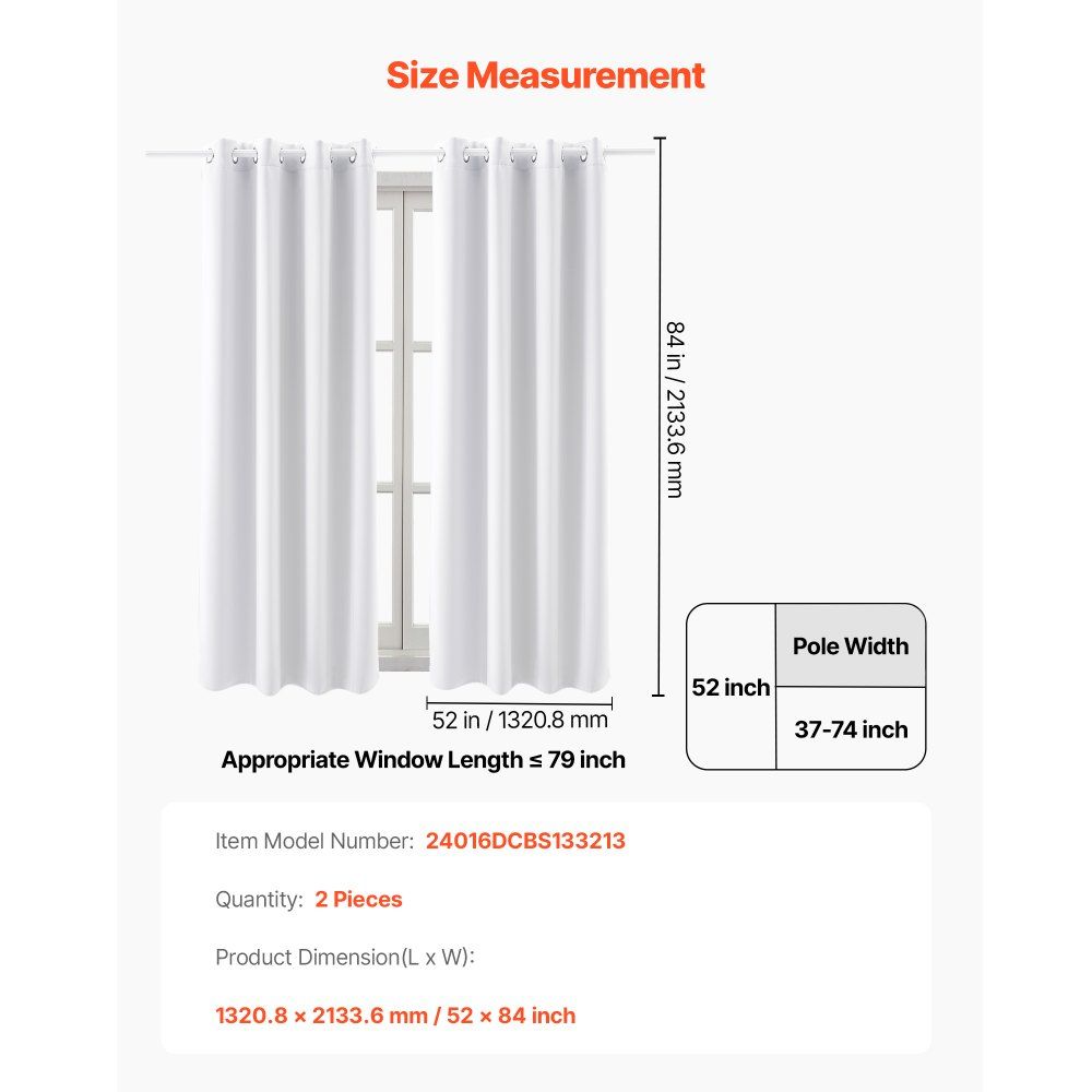 Blackout Curtain Panels White 52x84 Thermal Insulated Room Darkening Drapes