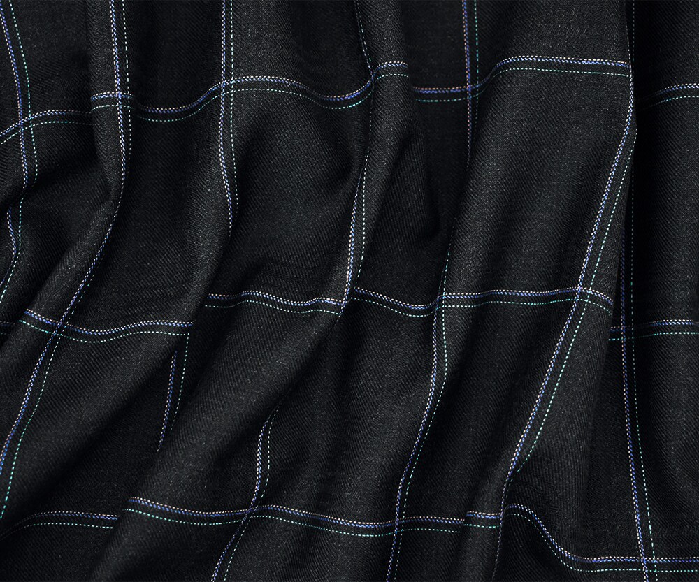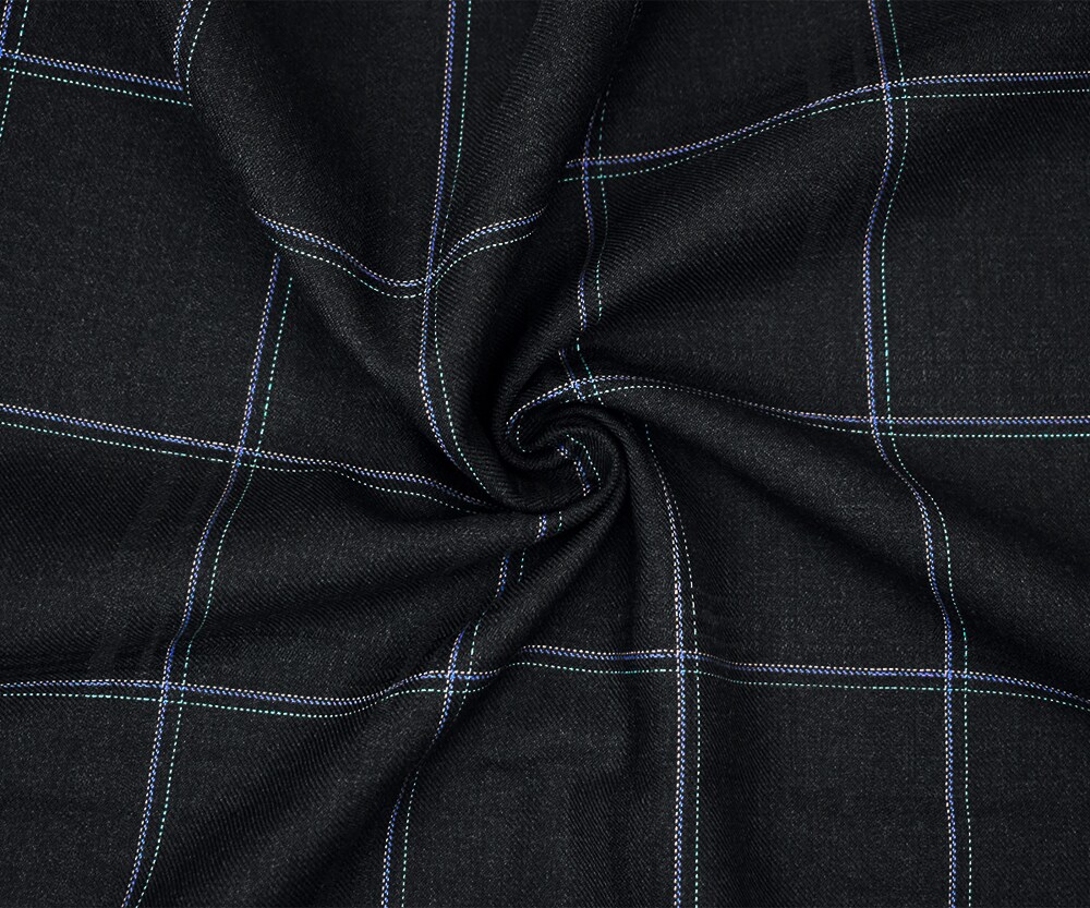 Black-Pink-Blue Polyester Wool Grid Plaid Twill Woven Shirting Fabric By the Yard