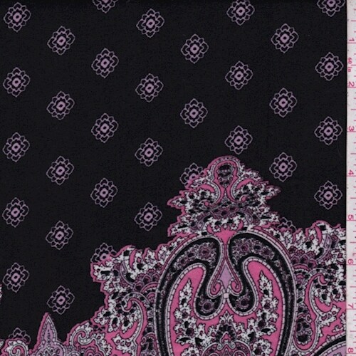 Black/Pink/Lilac Medallion/Paisley Crepe Fabric By the Yard