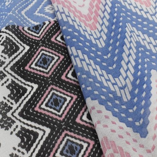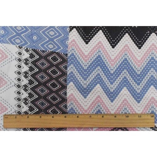 Black/Pink/Multi Chevron Patch Printed Chiffon Woven Fabric By the Yard