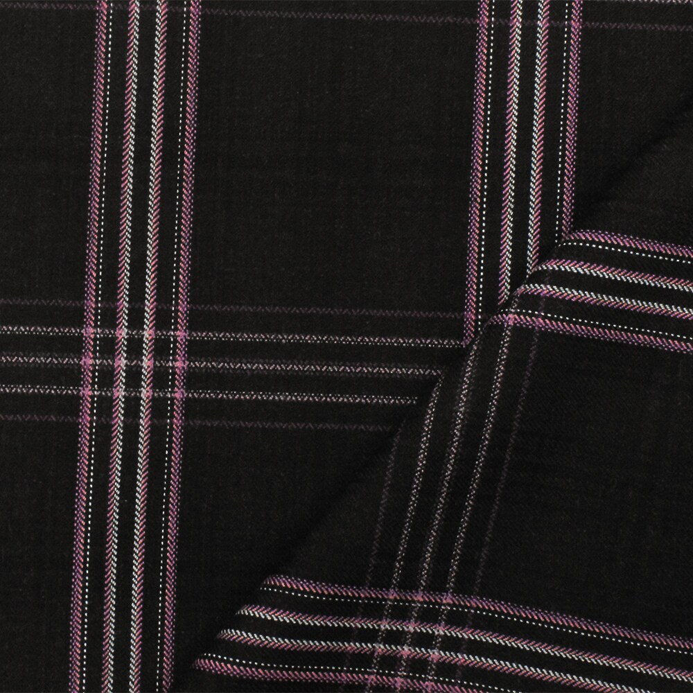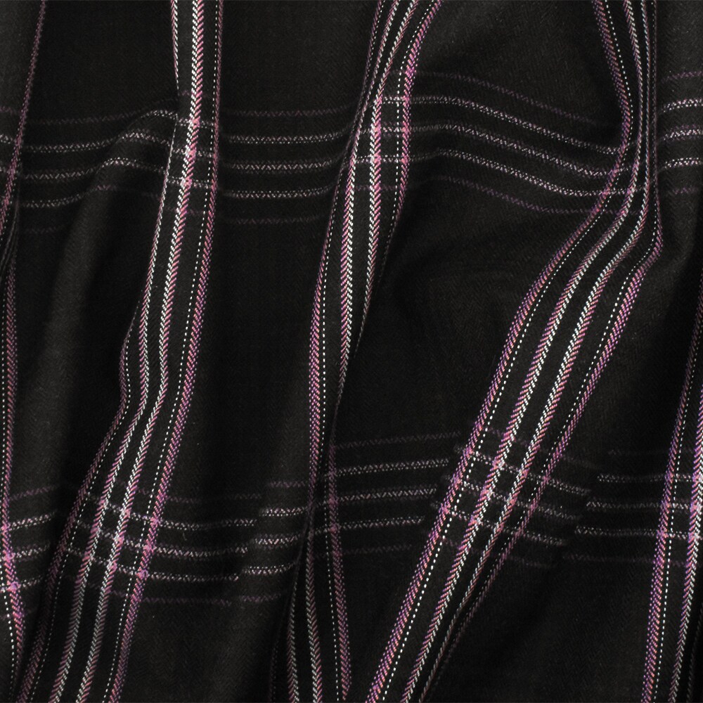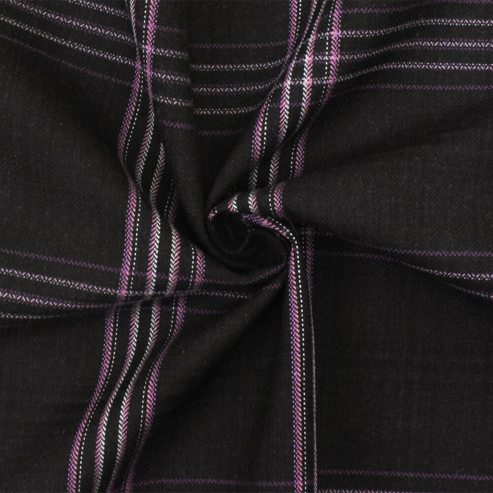 Black-Purple-Multi Plaid Wool Poly Herringbone Twill Woven Suiting Fabric By the Yard