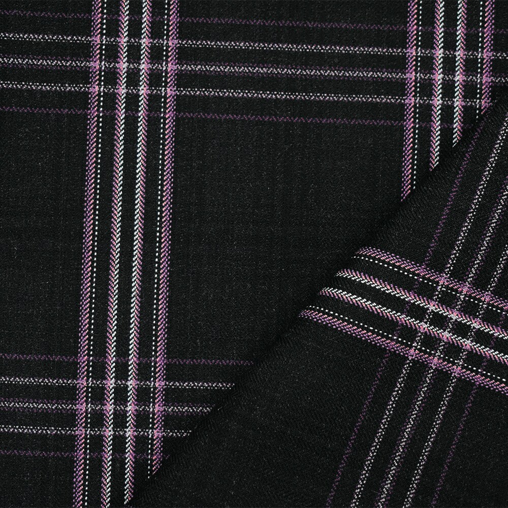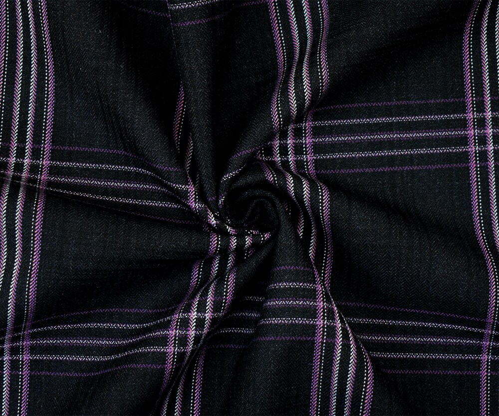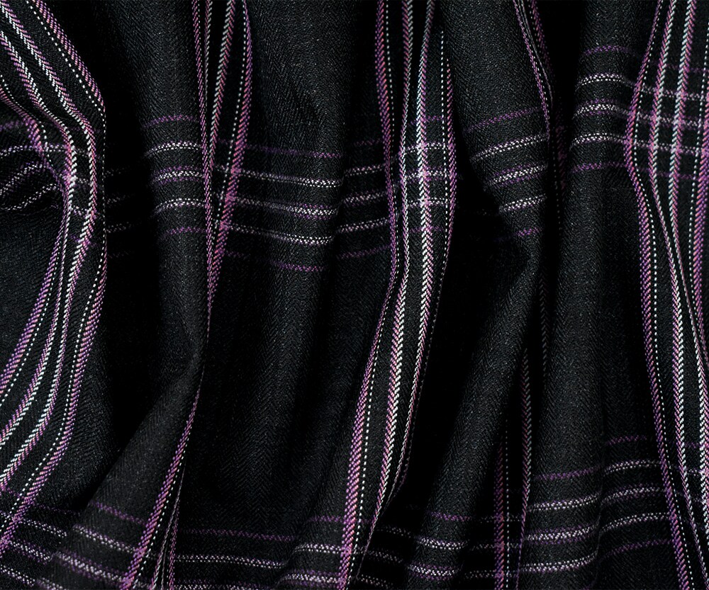 Black-Purple-Multi Wool-Polyester Plaid Herringbone Woven Suiting Fabric By the Yard