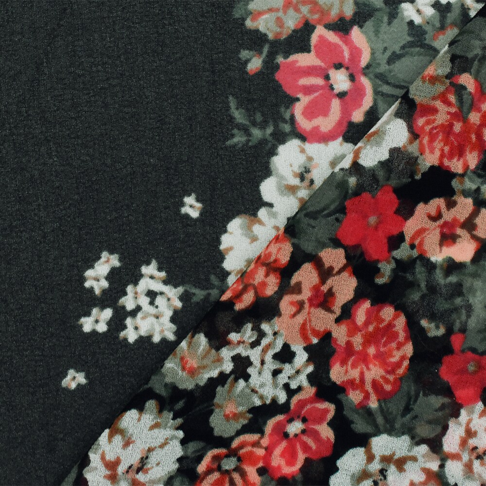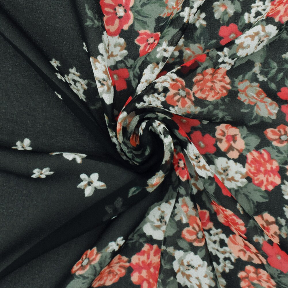 Black-Red-Multi Floral Printed Poly Chiffon Woven Fabric By the Yard