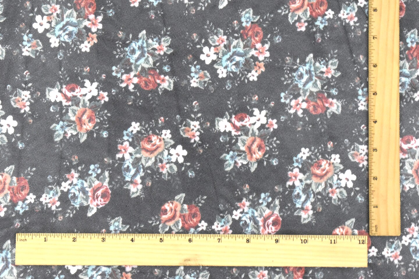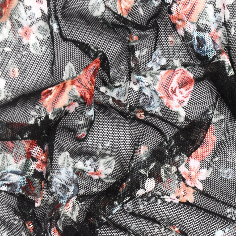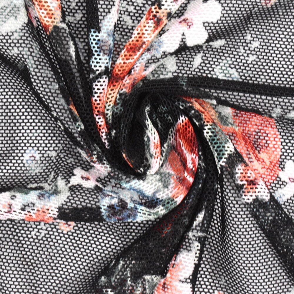 Black-Red-Multi Floral Printed Stretch Mesh Knit Fabric By the Yard