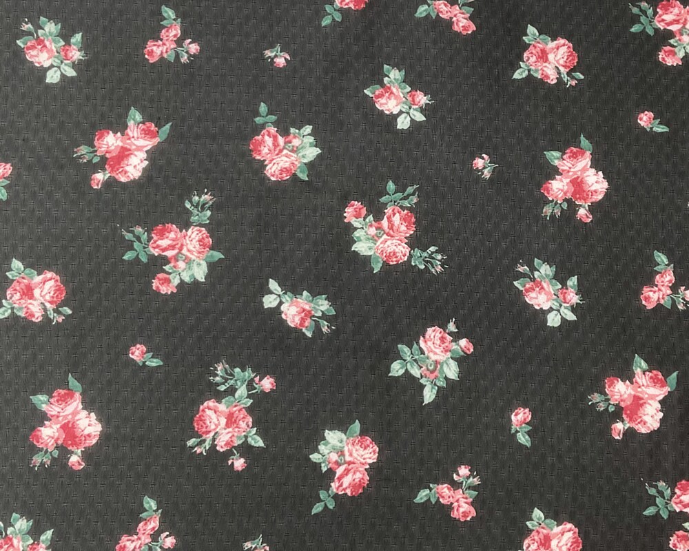 Black-Red-Multi Poly Floral Printed Dobby Chiffon Woven Fabric By the Yard