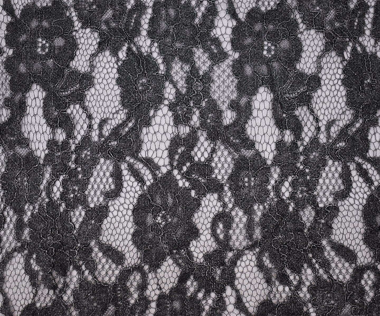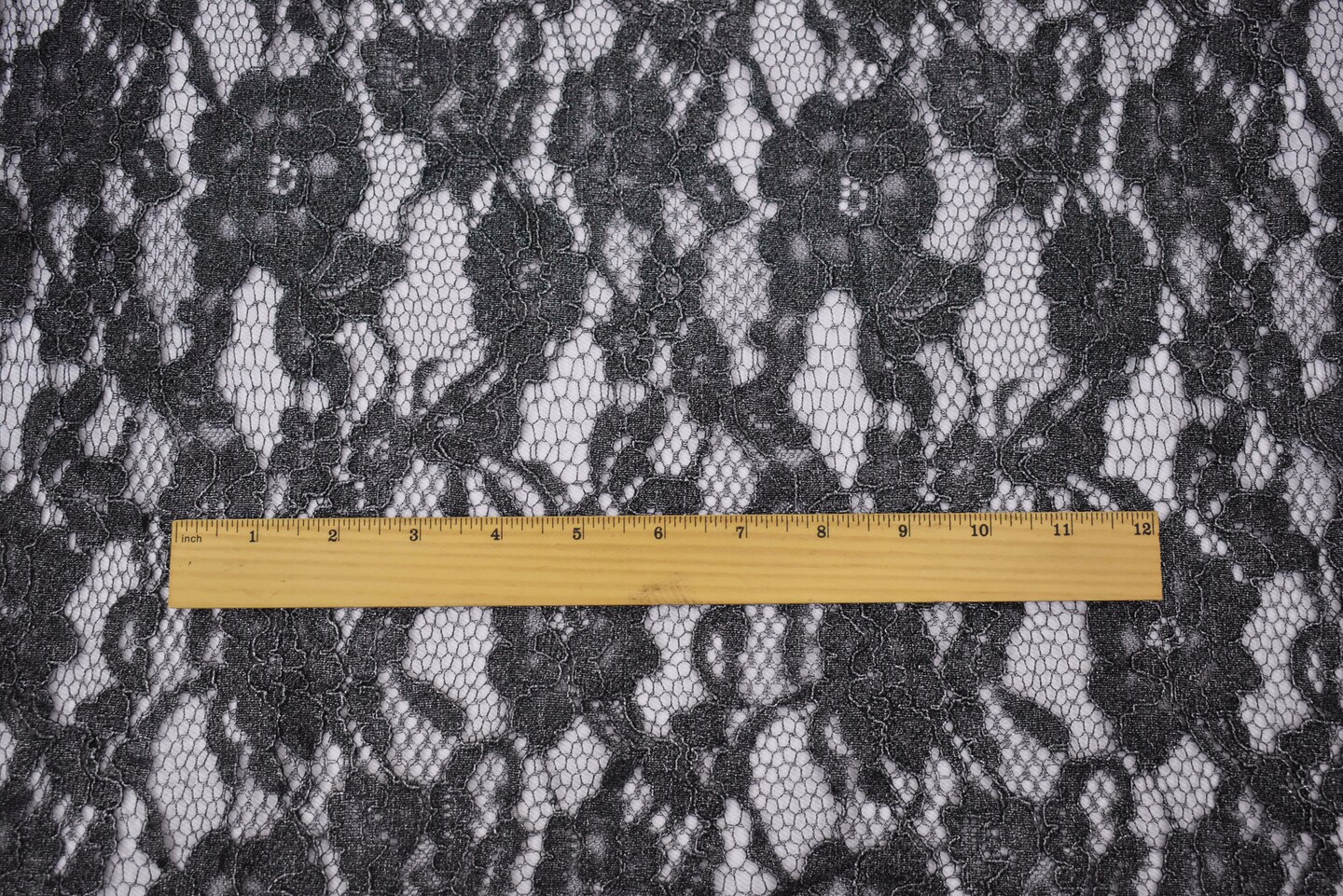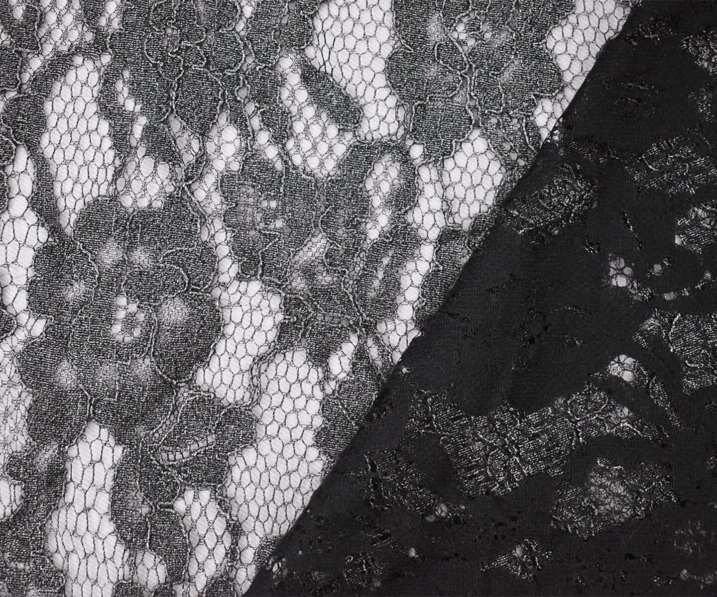Black-Silver Cotton Polyester Crochet Floral Lace Mesh Knit Fabric By the Yard