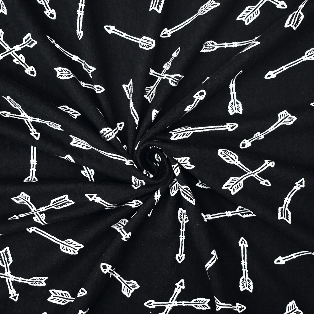Black-White Arrow Printed Poly Stretch Double Brushed Jersey Knit Fabric By the Yard