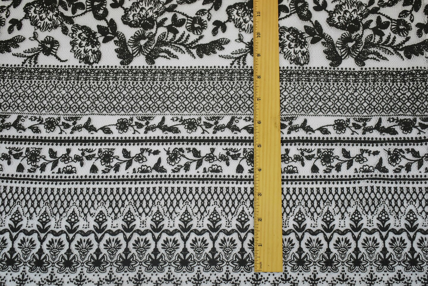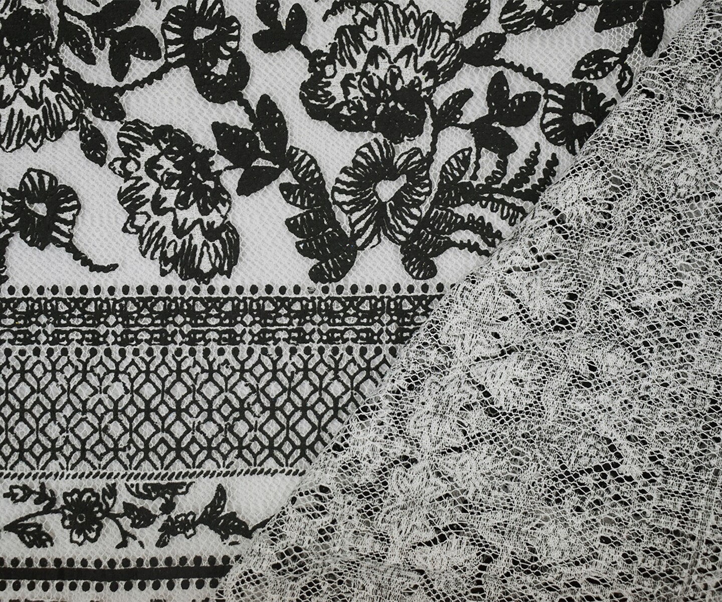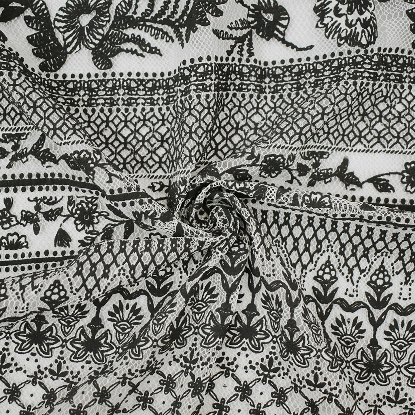 Black-White Cotton Nylon Floral Printed Mesh Fabric By the Yard