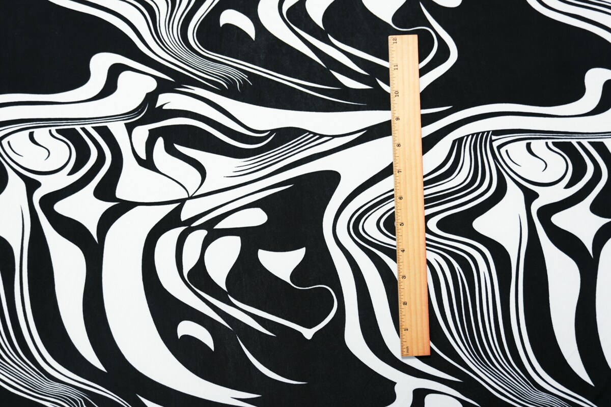 Black-White Poly Stretch Abstract Printed ITY Jersey Knit Fabric By the Yard