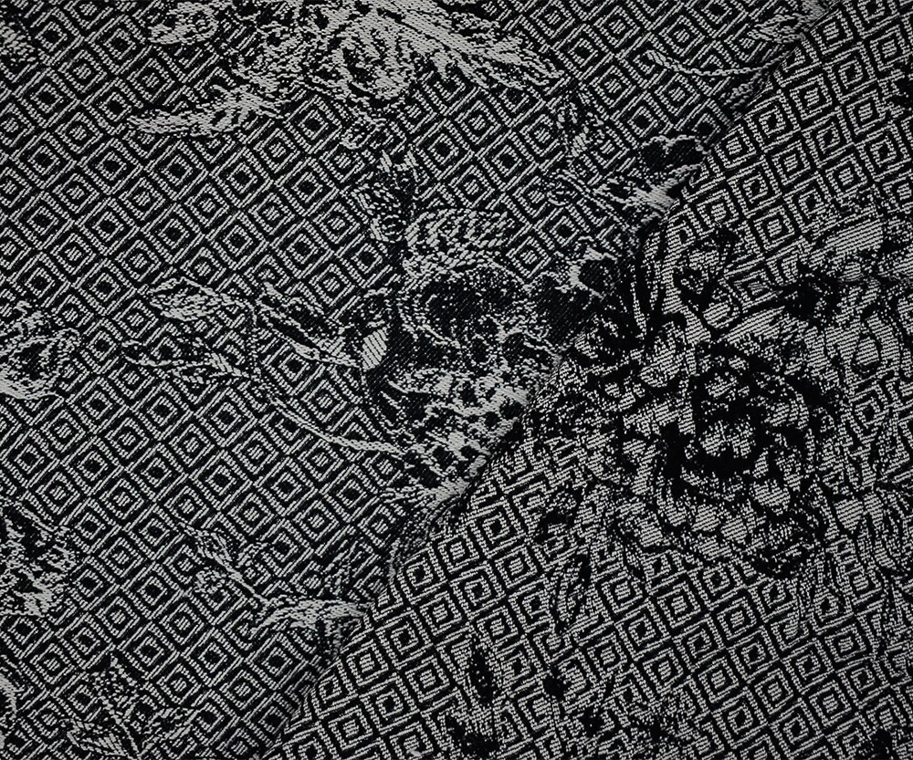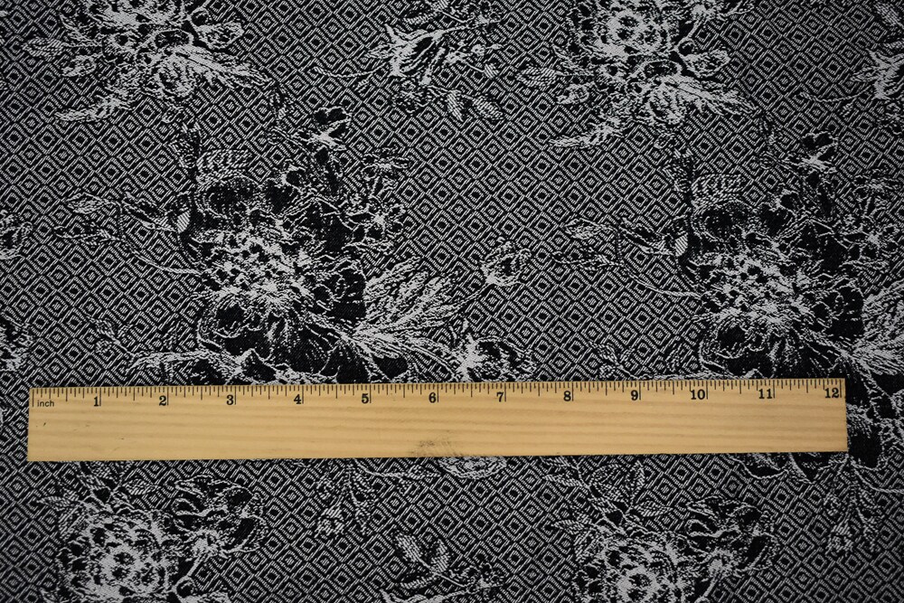 Black-White Rayon Blend Stretch Floral Diamond Bengaline Jacquard Fabric By the Yard