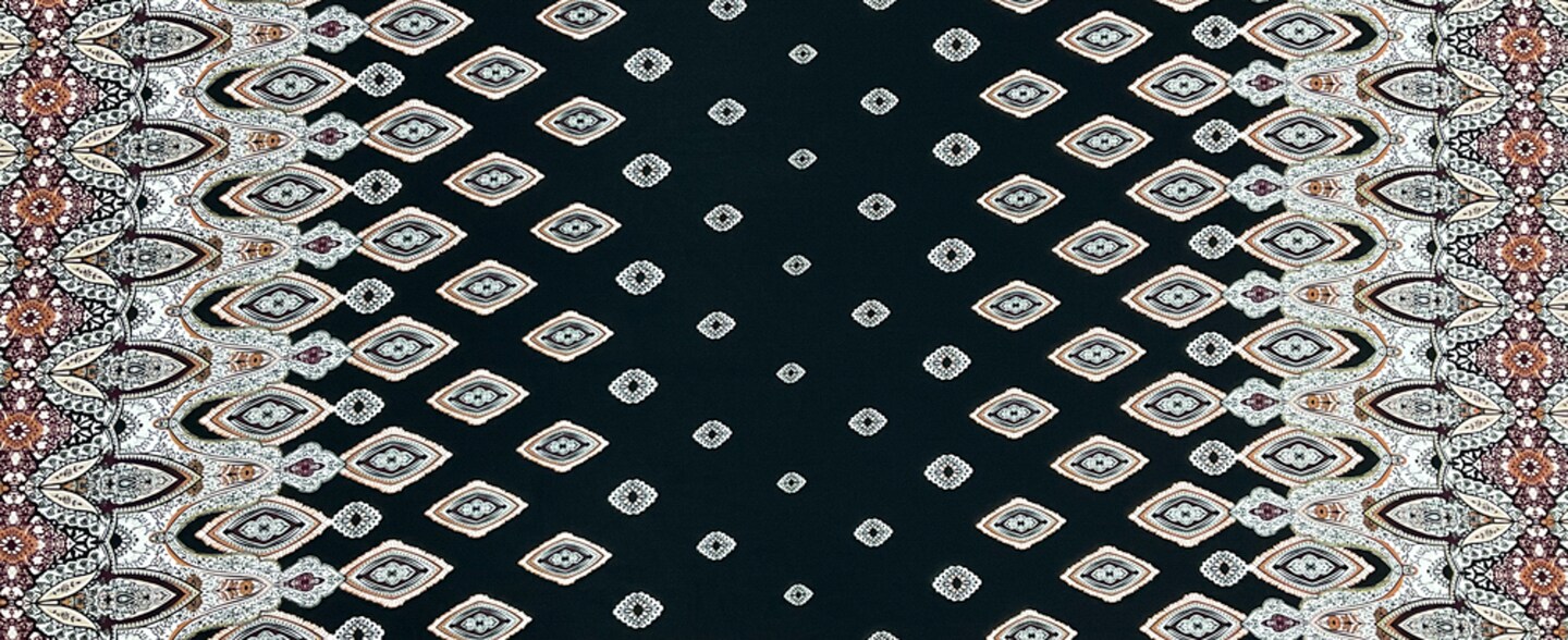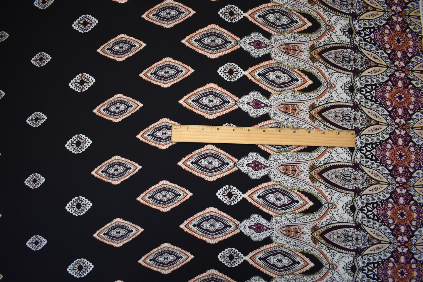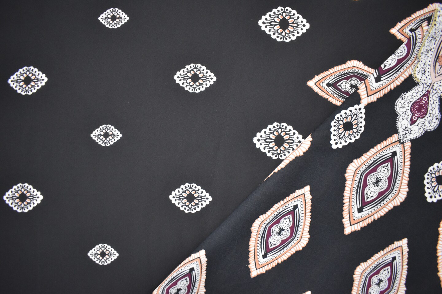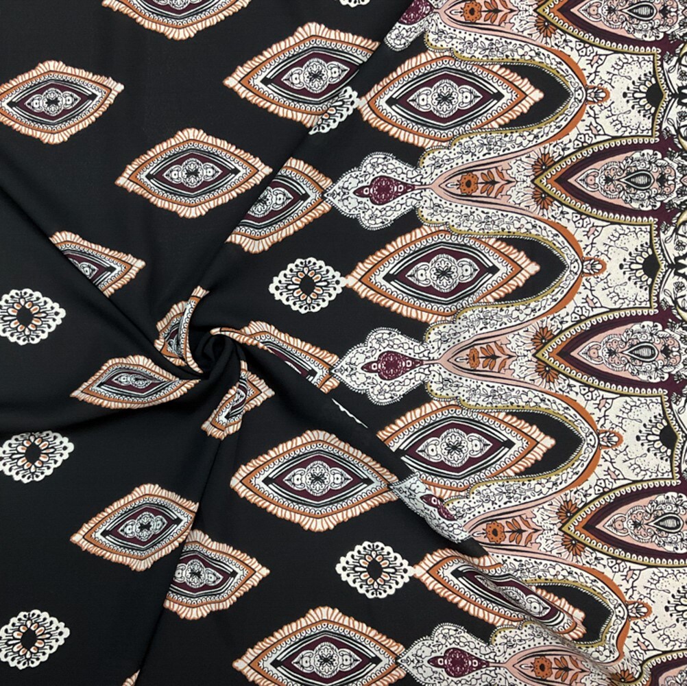 Black-White-Multi Poly Diamond Paisely Border Printed Georgette Woven Fabric By the Yard