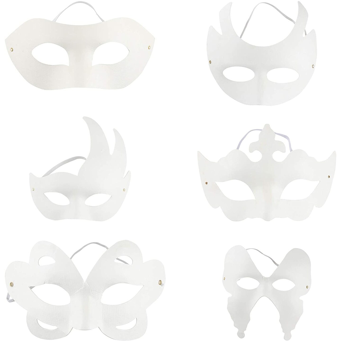 Blank Mardi Gras Paper Masks for Decorating, Masquerade Party (6 Designs, 12 Pack)