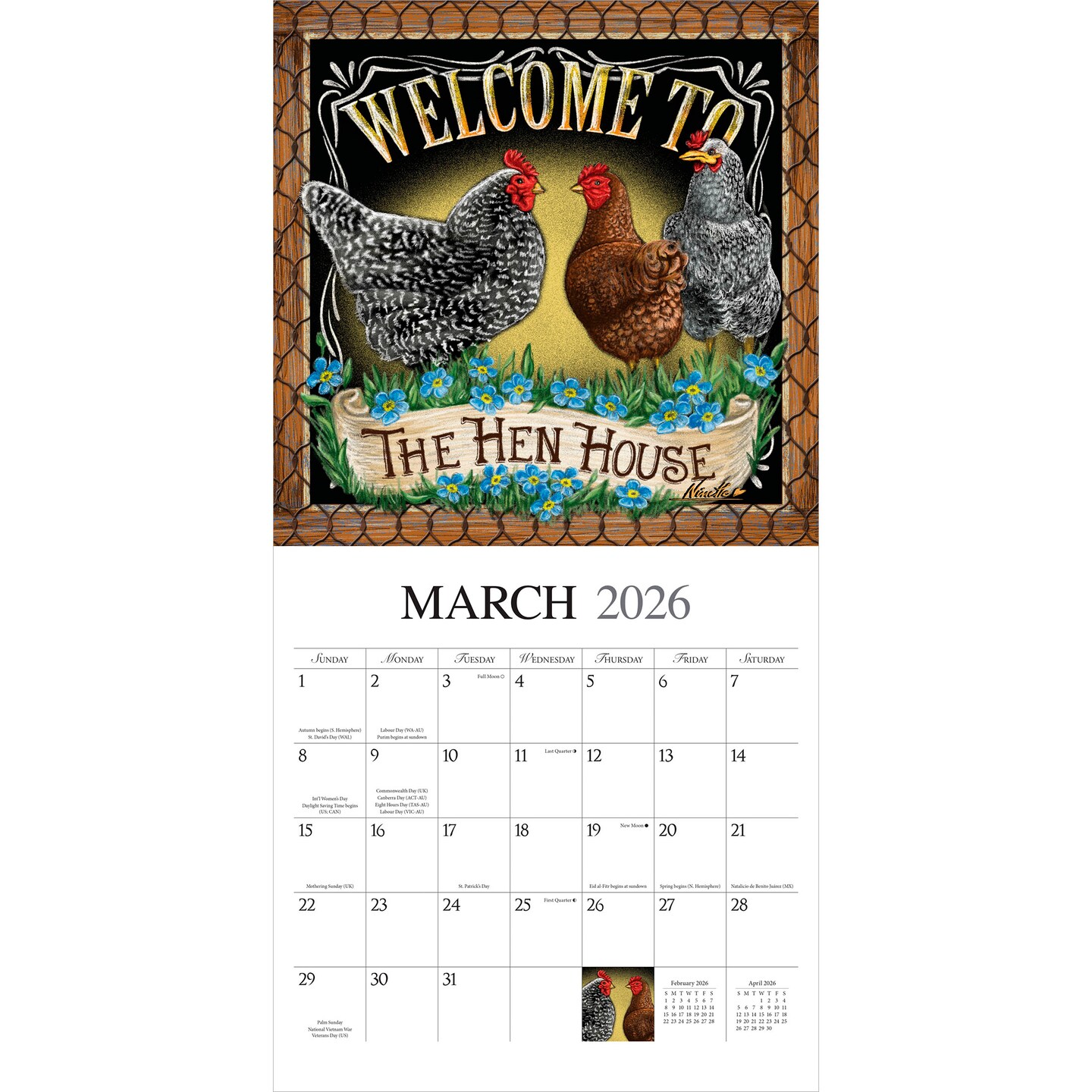 Bless This Nest | 2026 12 x 24 Inch (Hanging) Monthly Square Wall Calendar | Featuring the Artwork of Ninette Parisi | Plastic-Free