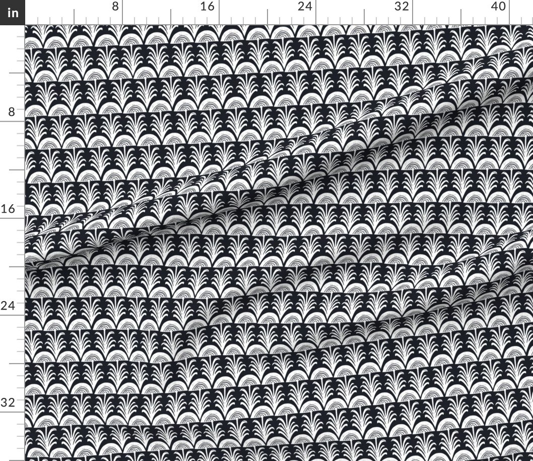 Block Print Black And White Botanical Arch Leaves Rustic Custom Printed Fabric by Spoonflower Various Fabrics by the Yard or Fat Quarter
