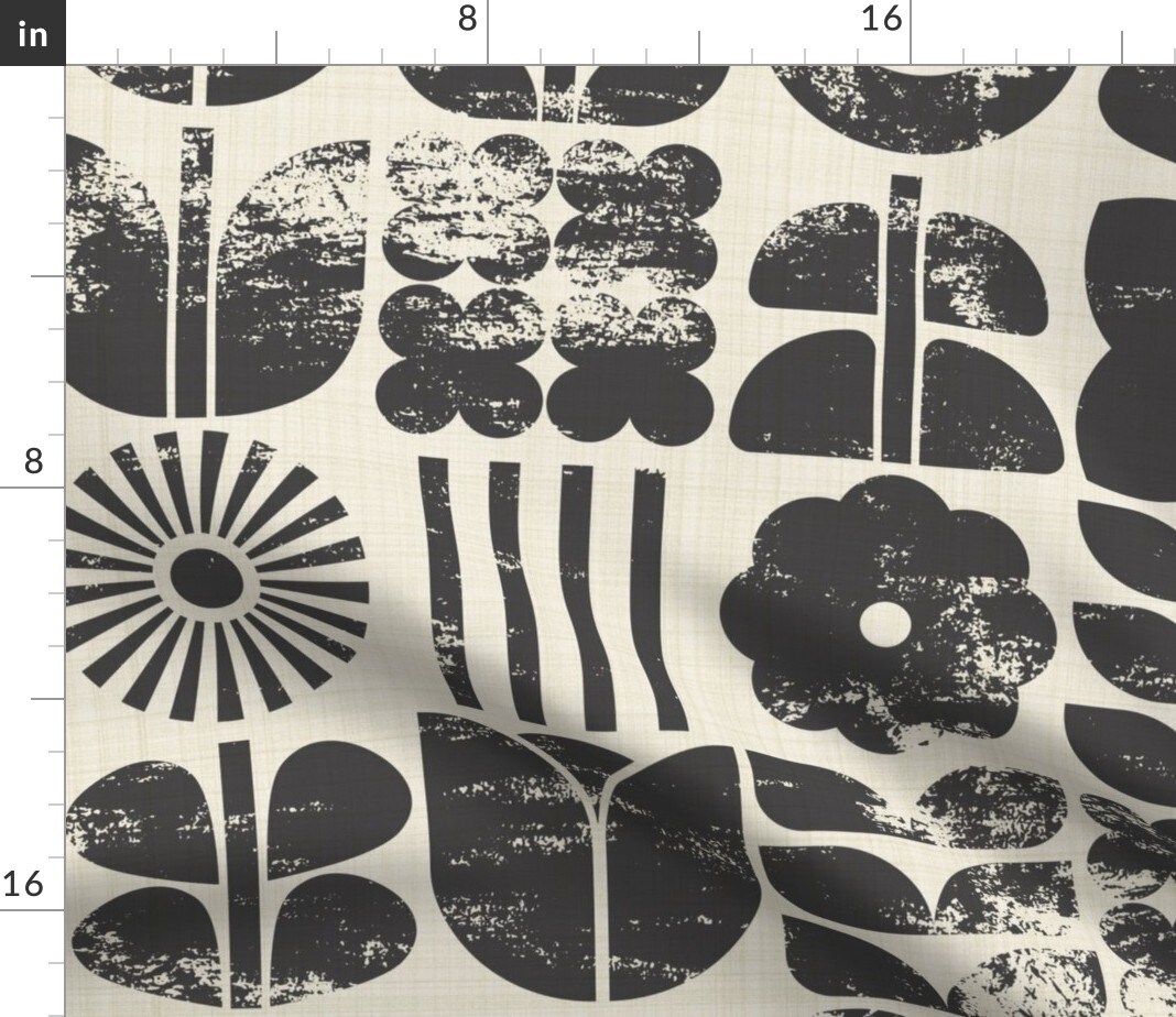 Block Print Floral Black Cream Botanical Retro Scandinavian Monochromatic Mcm Custom Printed Fabric by Spoonflower Various Fabrics by the Yard or Fat Quarter