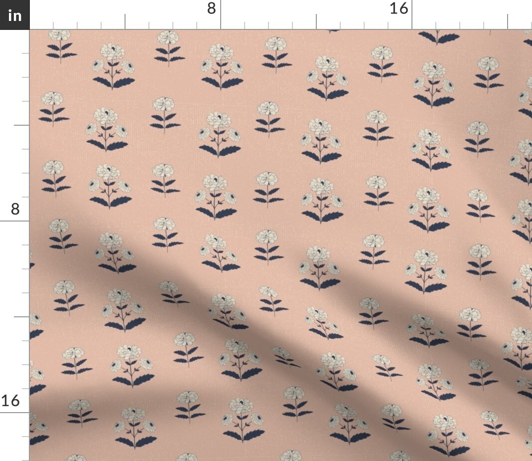 Block Print Flowers Boho Country Rustic Botanical Peach Pink Indigo Blue Custom Printed Fabric by Spoonflower Various Fabrics by the Yard or Fat Quarter