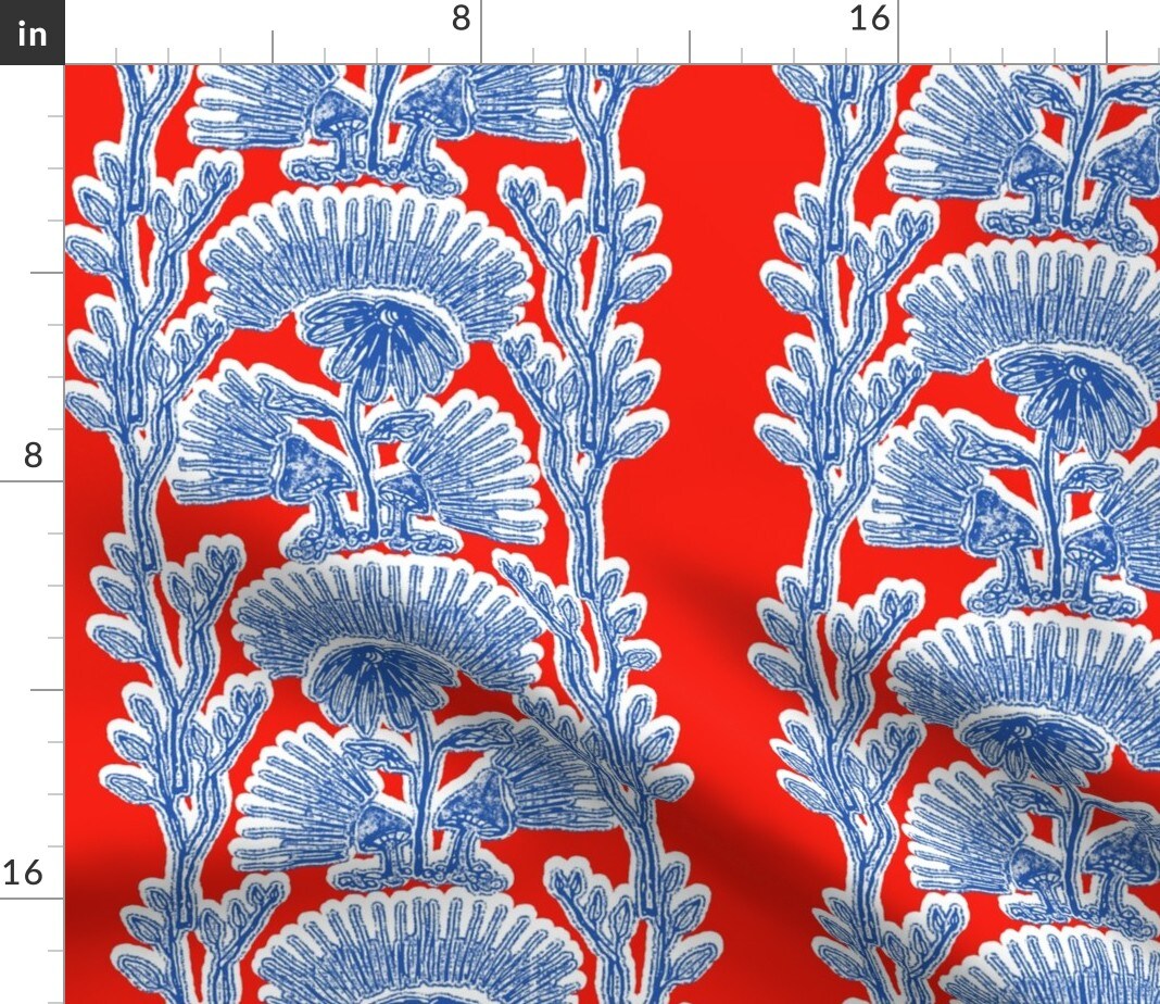 Block Print Red Blue Abstract Botanical Modern Floral Stripes Vibrant Boho Custom Printed Fabric by Spoonflower Various Fabrics by the Yard or Fat Quarter