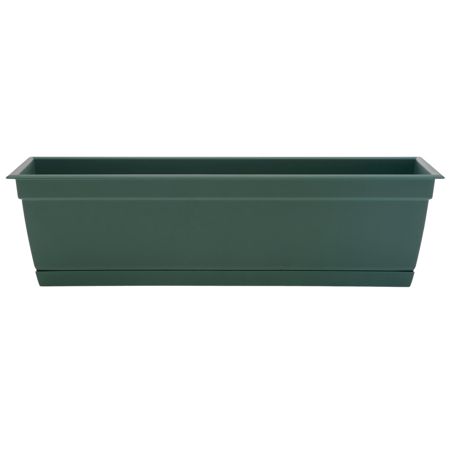 Bloem Dayton Window Box Planter: 24" - Turtle Green - 100% Recycled Durable Plastic Box, Elevated Feet, For Indoor and Outdoor Use, Gardening, 5 Gallon Capacity