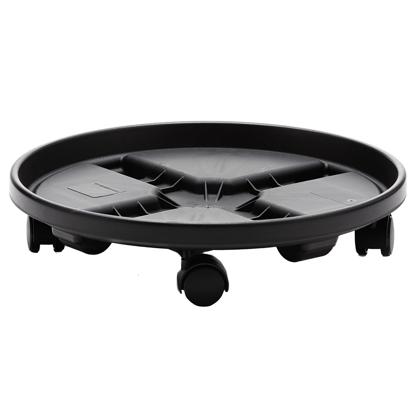 Bloem Round Planter Caddy With Wheels: 12" - Black - Durable Plastic Dolly, 360 Degree Wheel Movement, For Indoor and Outdoor Use, Gardening, 75 lb Capacity