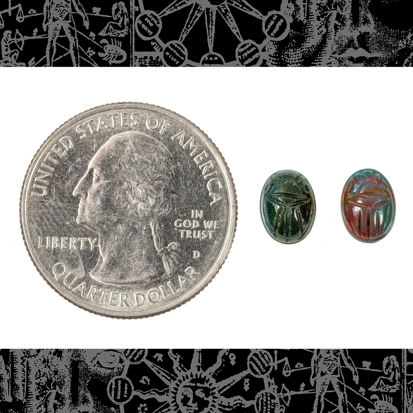Bloodstone Scarab Flat Back 8mm x 6mm Cabochons - Set of Two - XXX - STC11