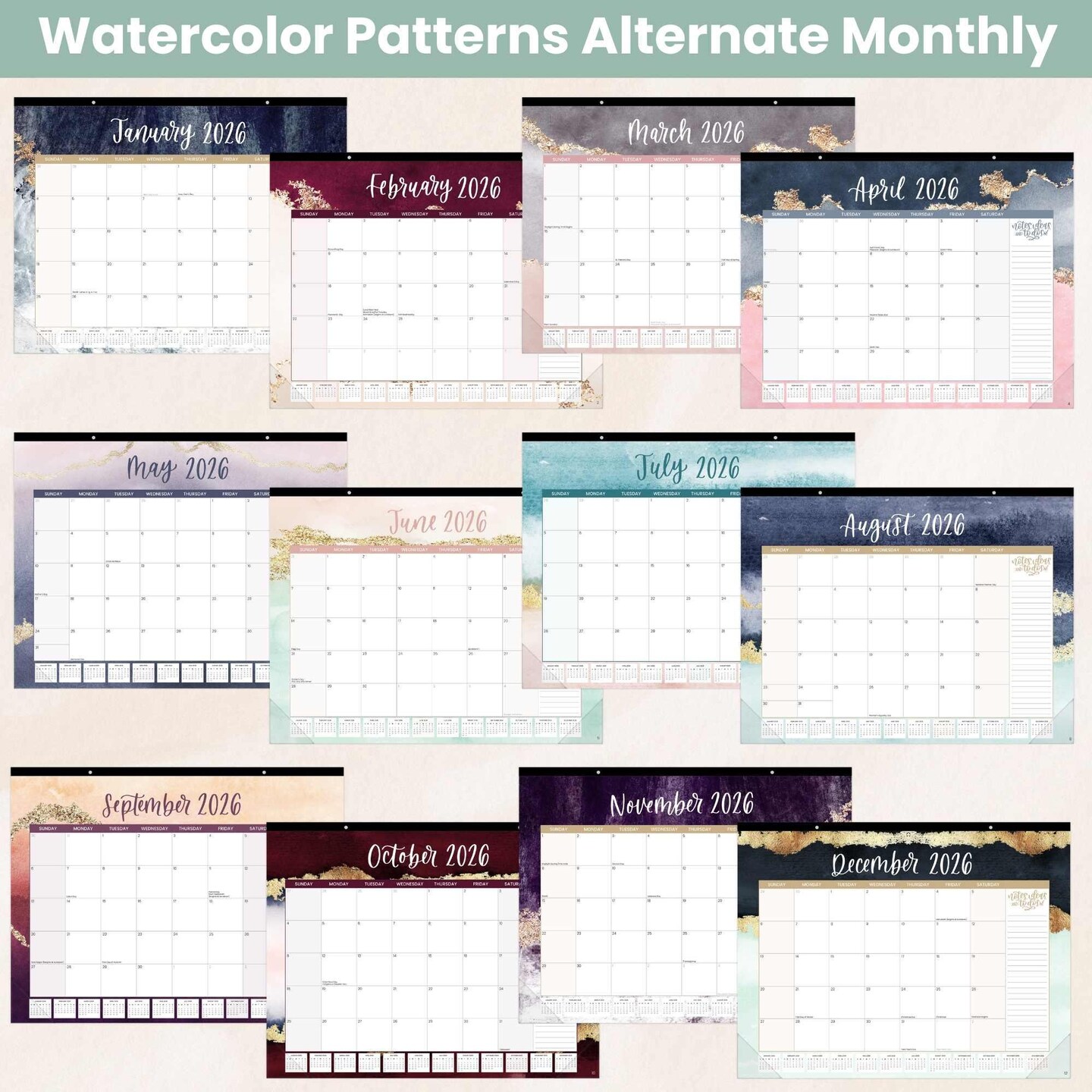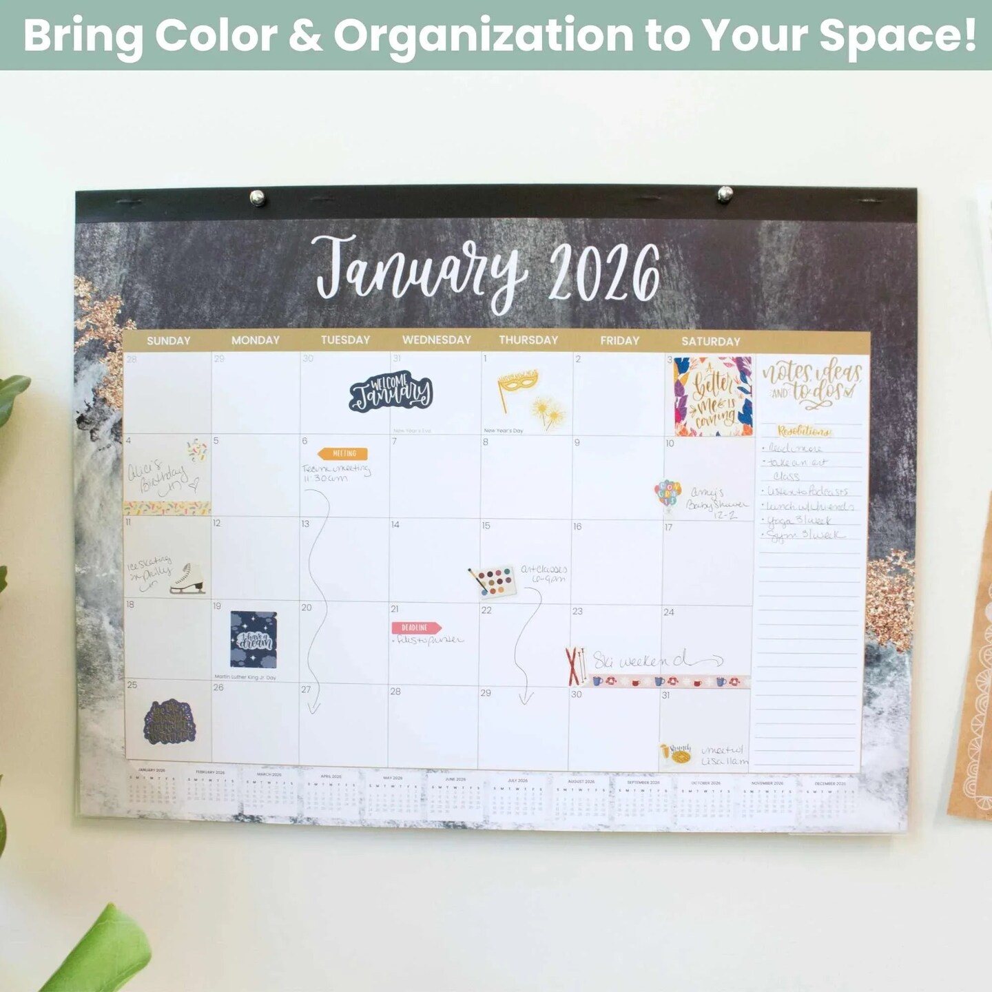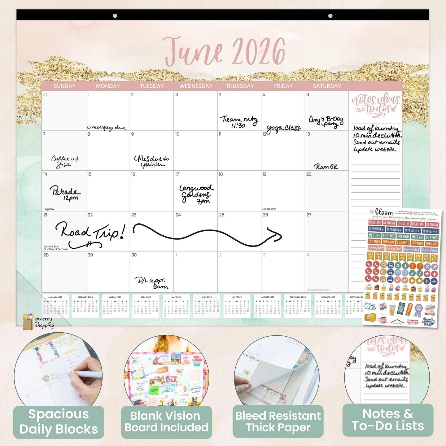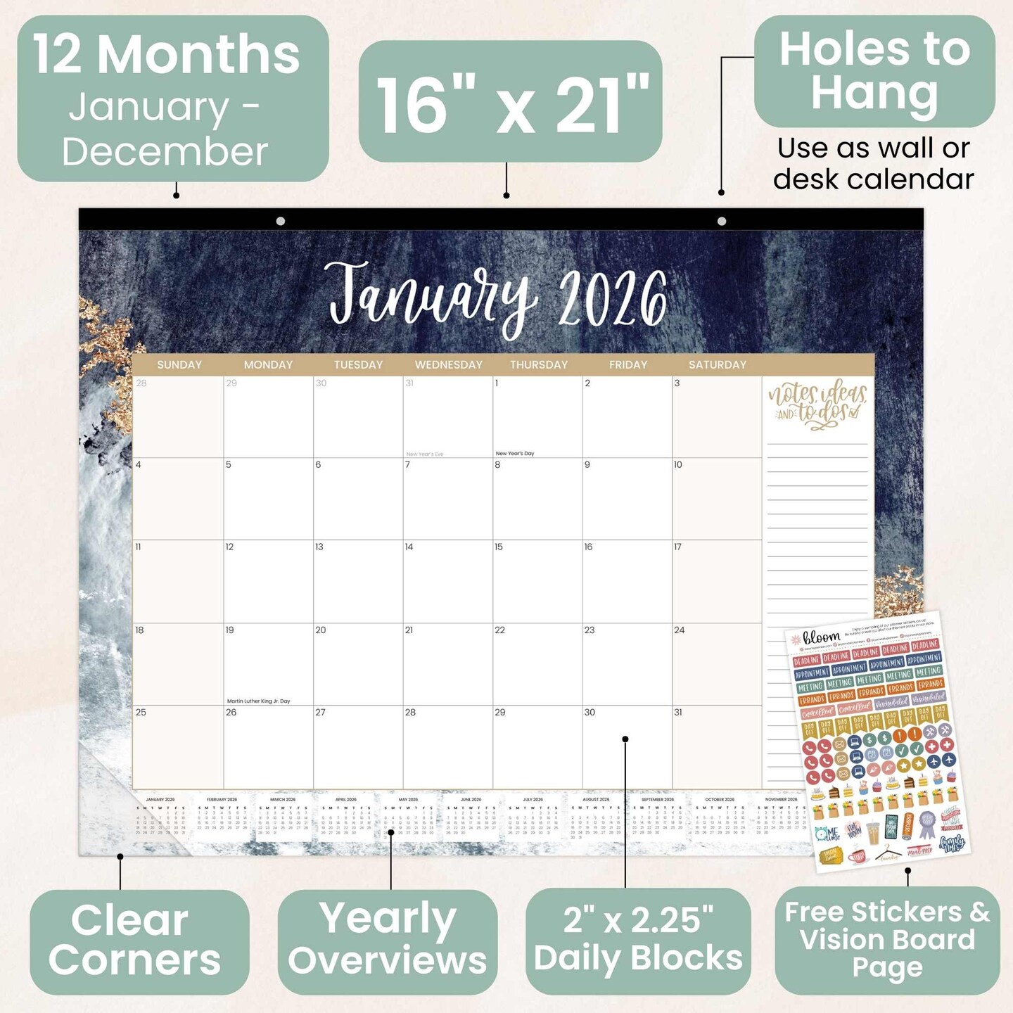 bloom daily planners 2026 Desk & Wall Calendar, 16" x 21", Watercolor