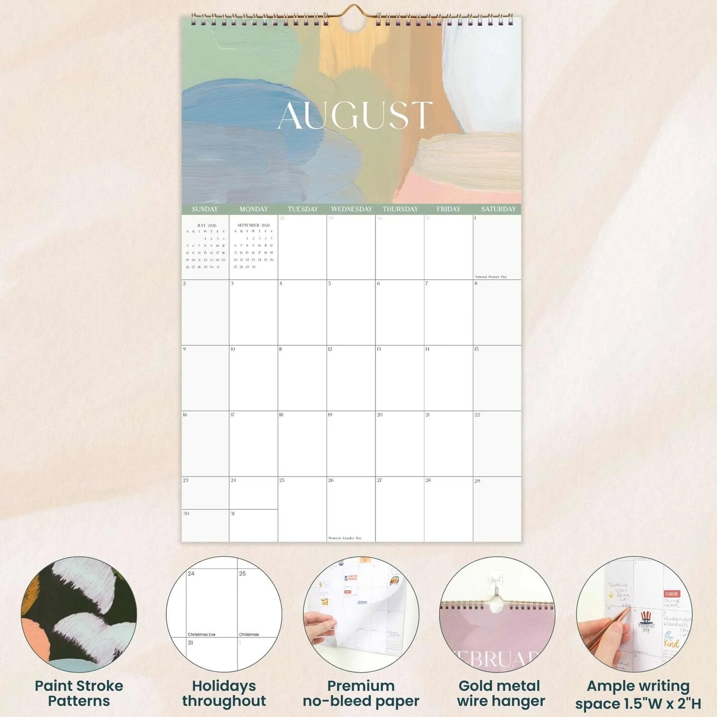 bloom daily planners 2026 Hanging Calendar, 11" x 17", Paint Strokes