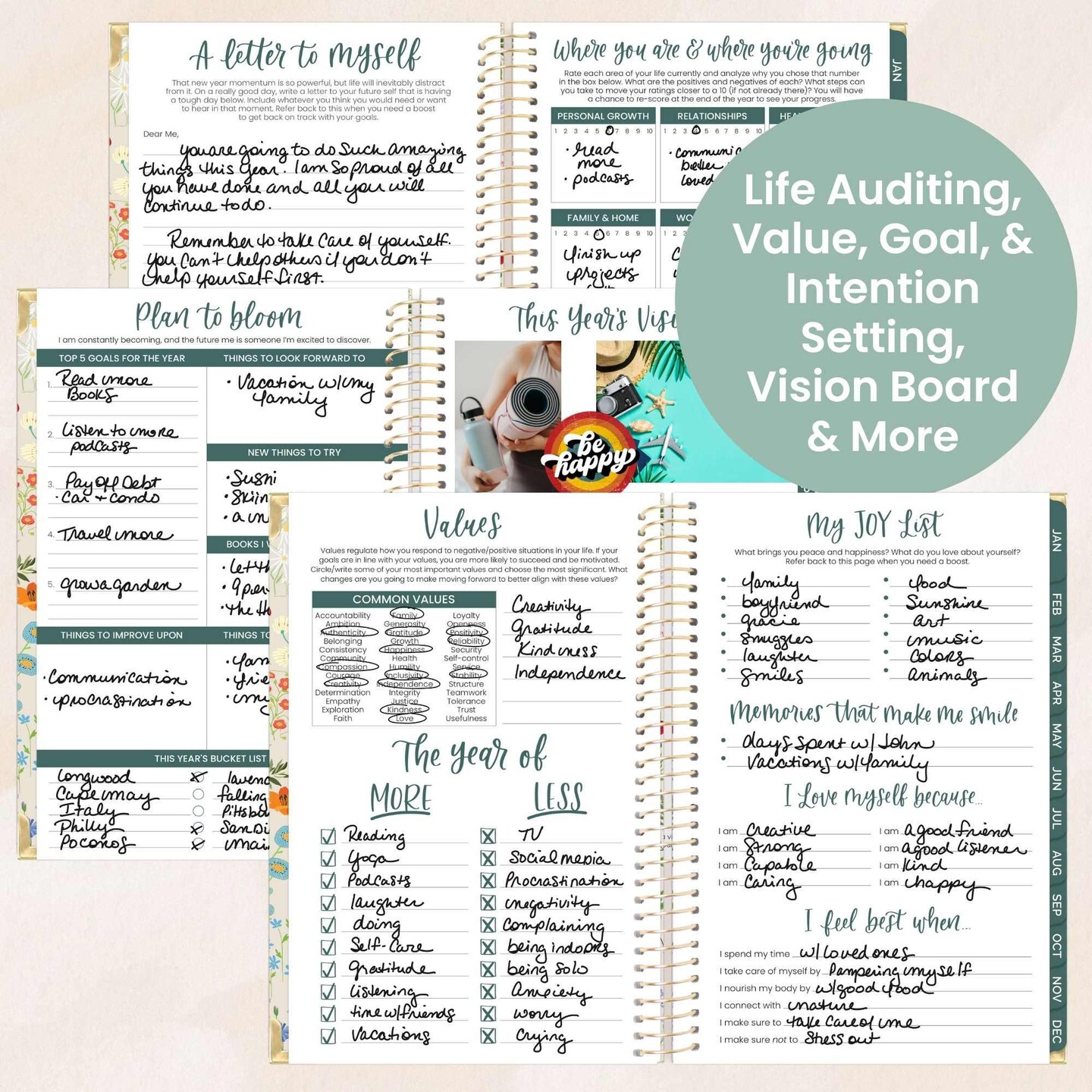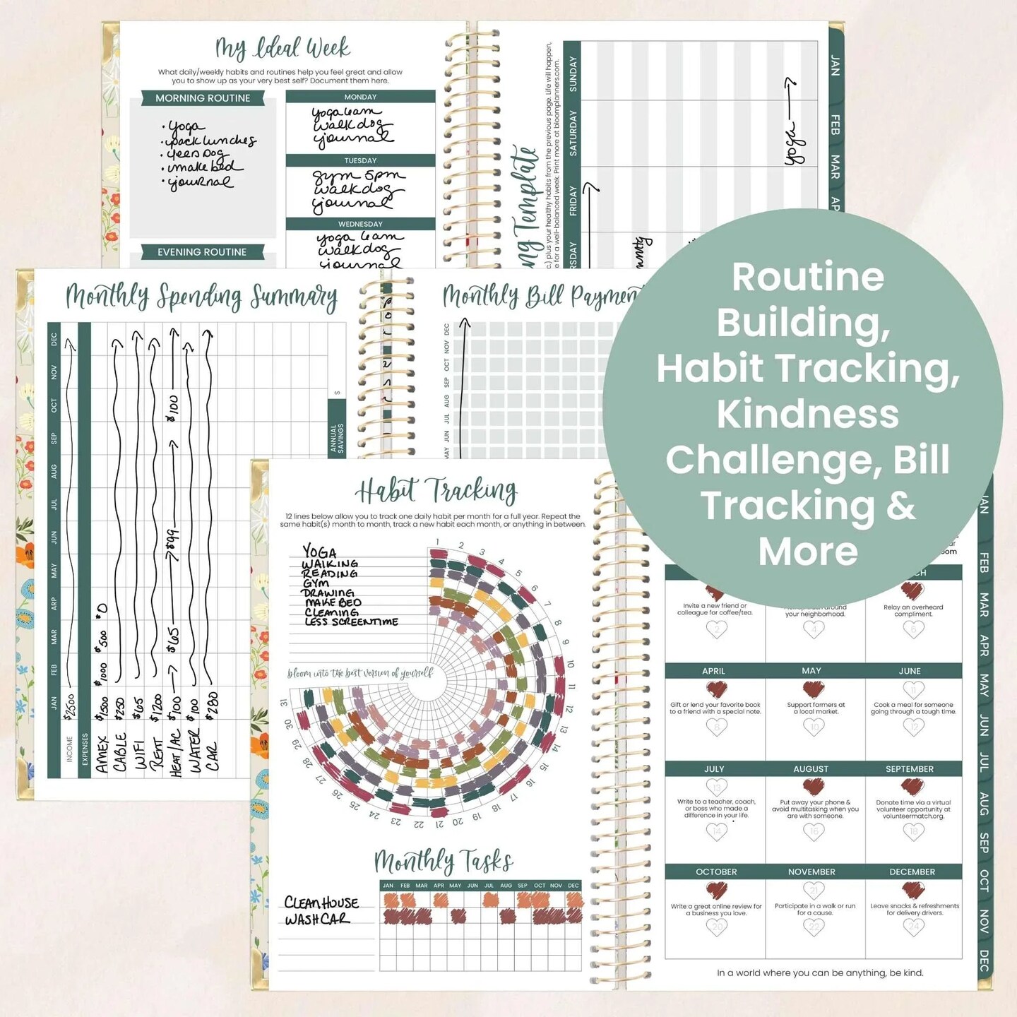 bloom daily planners 2026 Hard Cover Weekly & Monthly Planner, 5.5" x 8.25", Garden Party, Beige