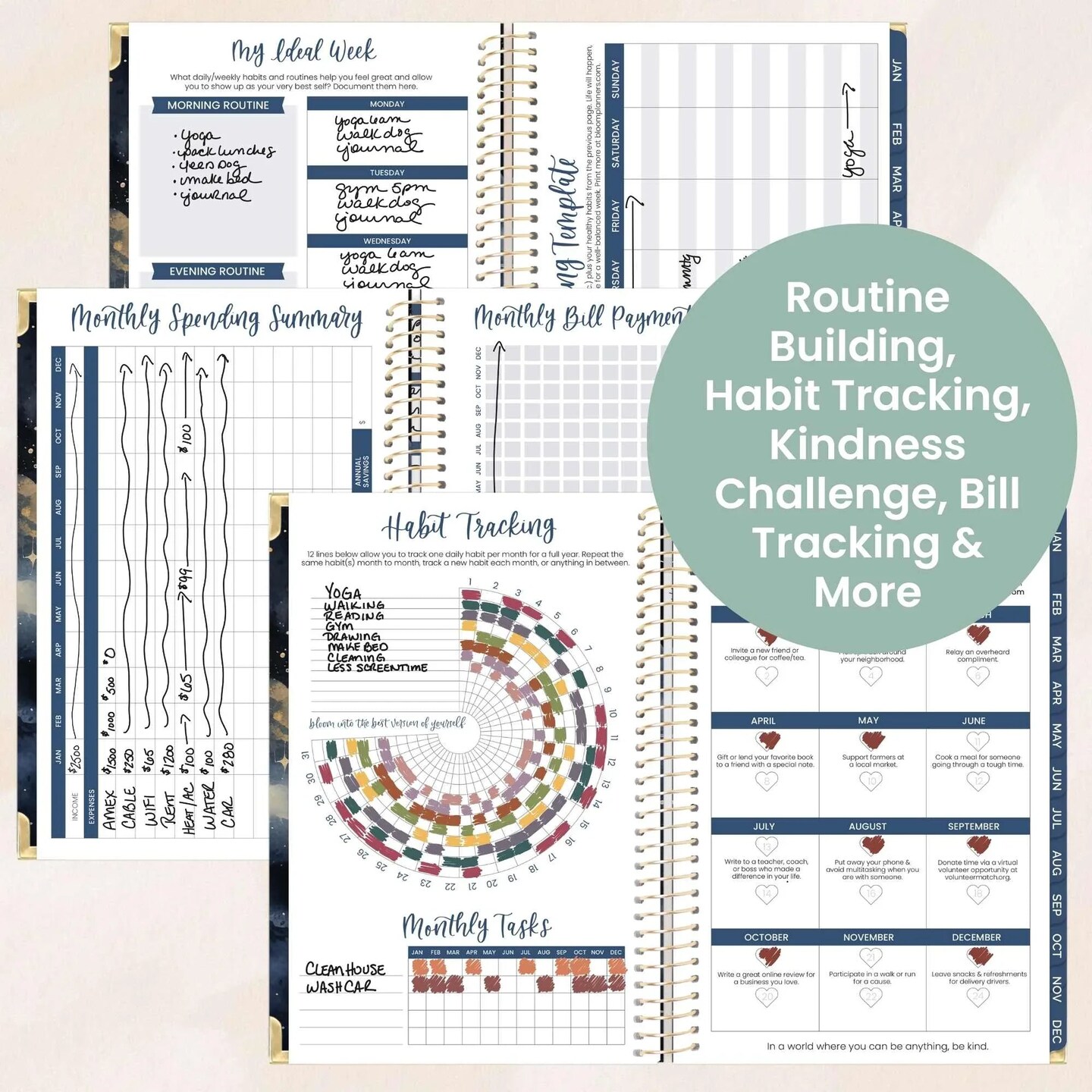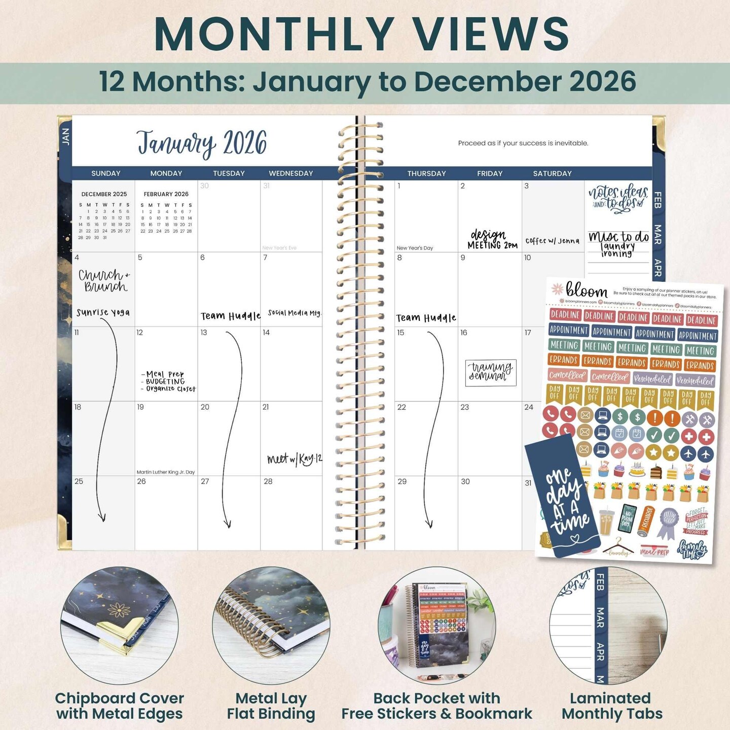 bloom daily planners 2026 Hard Cover Weekly & Monthly Planner, 5.5" x 8.25", Midnight Sky