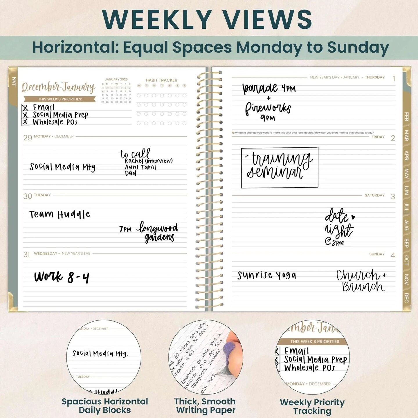 bloom daily planners 2026 Hard Cover Weekly & Monthly Planner, 8.5" x 11", Linen, Green